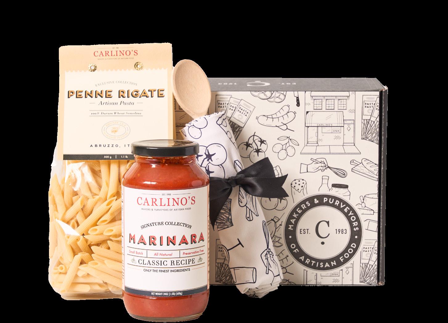 This beautiful gift box includes products from Carlino’s Exclusive Collection bringing the essence of Italian cuisine directly into your kitchen.