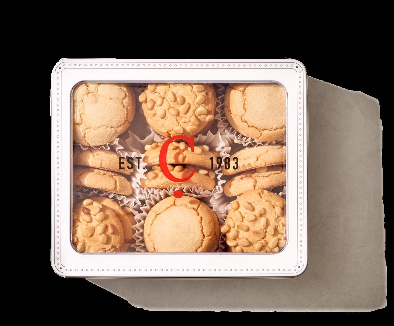 A delicious combination of our homemade pignoli and amaretti cookies baked with love, using Mama Carlino’s original recipes, and packed in our signature Carlino’s tin.
