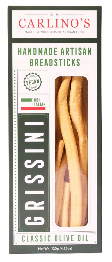 Handmade artisan grissini are traditional Italian breadsticks enjoyed alone or accompanying any meal. They are made with Italian olive oil and wheat flour, creating a crunchy yet flaky flavor experience.