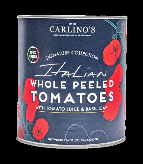 Carlino’s All-Natural tomatoes are grown and harvested in nutrient-rich volcanic soil from family farms in Naples, Italy. These plum tomatoes are vine-ripened by the sun and picked and packed at their peak each season. These tomatoes boast a sweet and robust flavor, low-acidity, and a meaty and tender texture, making them a pantry staple. The whole tomatoes are steam-peeled, packed in natural juices, and free of added sugar and preservatives.