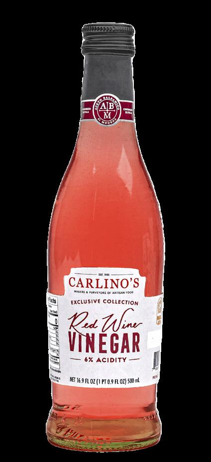 Our balsamic, authentic to Modena, Italy, is sweet and fruity with a rich, flavorful, and nectar-like taste—a Carlino signature. The red and white wine vinegars boast a light and zesty flavor with a high acidity. They are made from Trebbiano grapes simmered in copper pots and aged for 12 years in light oak barrels.