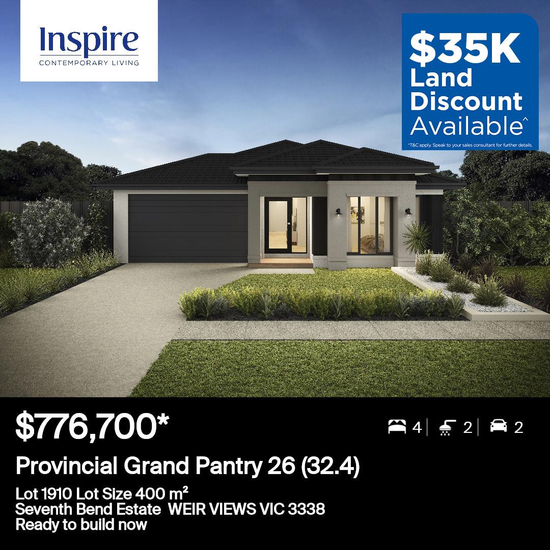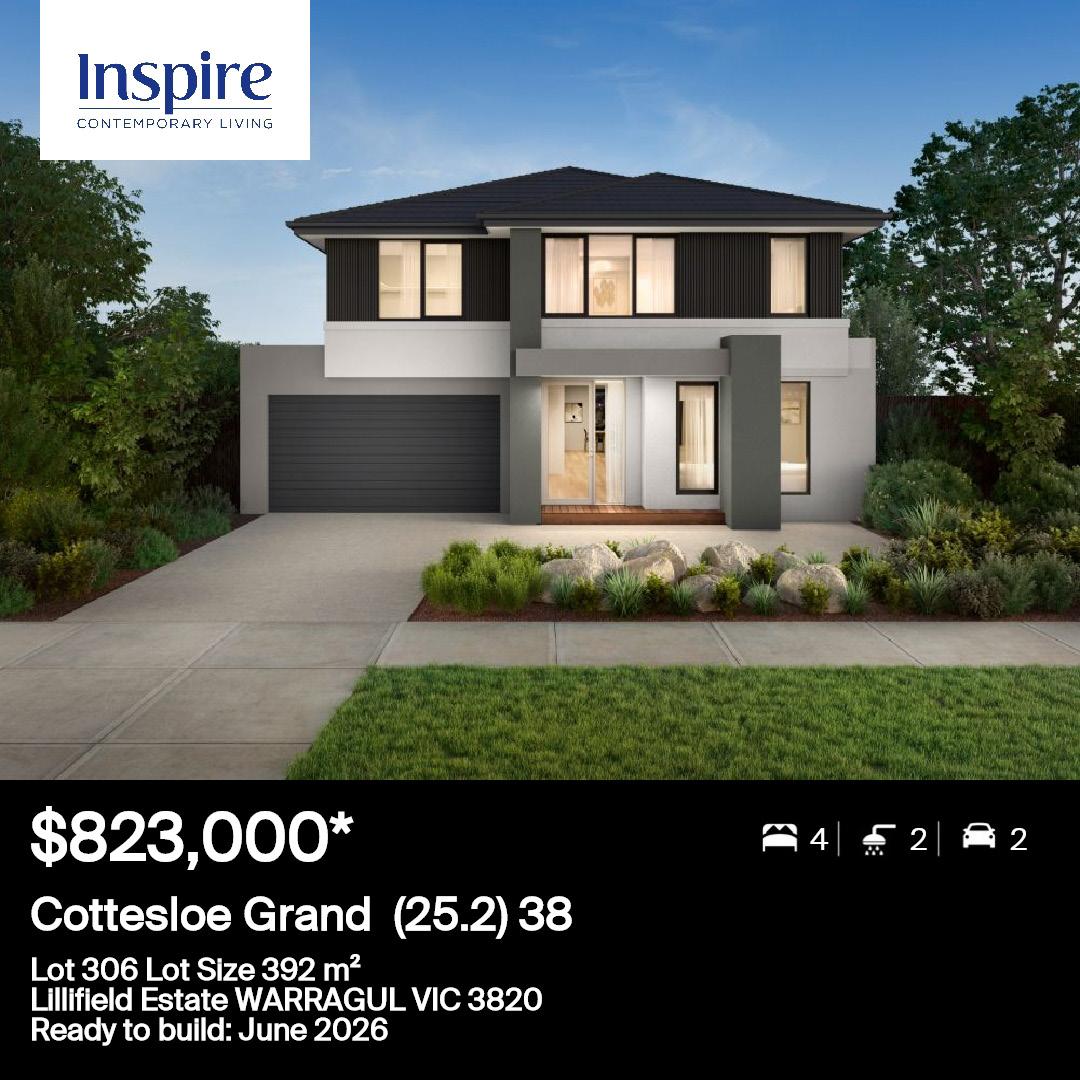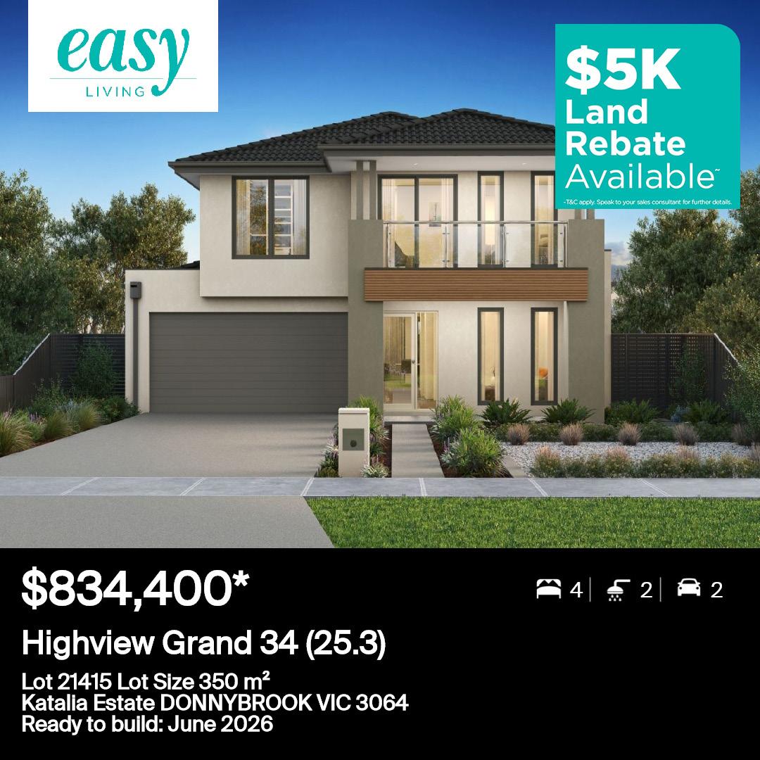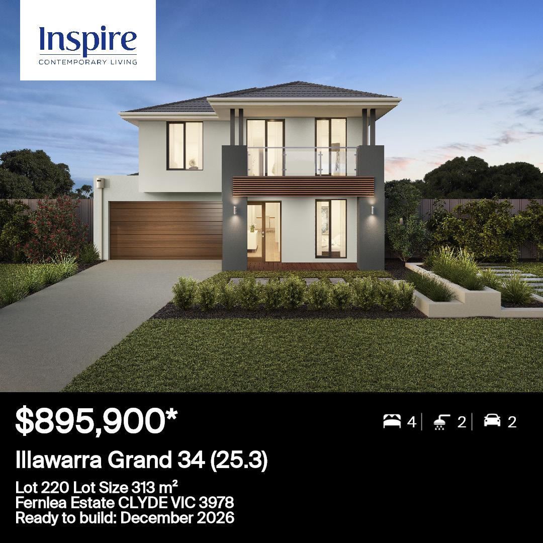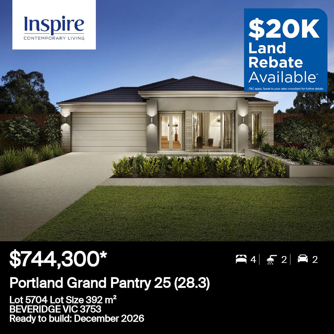 *Price based on Developer supplied engineering plans and Plan of Subdivision; standard floor plan with preferred siting (without alterations), Carlisle’s recommended Building Surveyor and residential zoning at package date. Confirm land prices and availability prior to purchase. Subject to developer and council approval. Pricing also excludes features not supplied by Carlisle, including fencing, landscaping, planting, letterbox, decking and driveway.