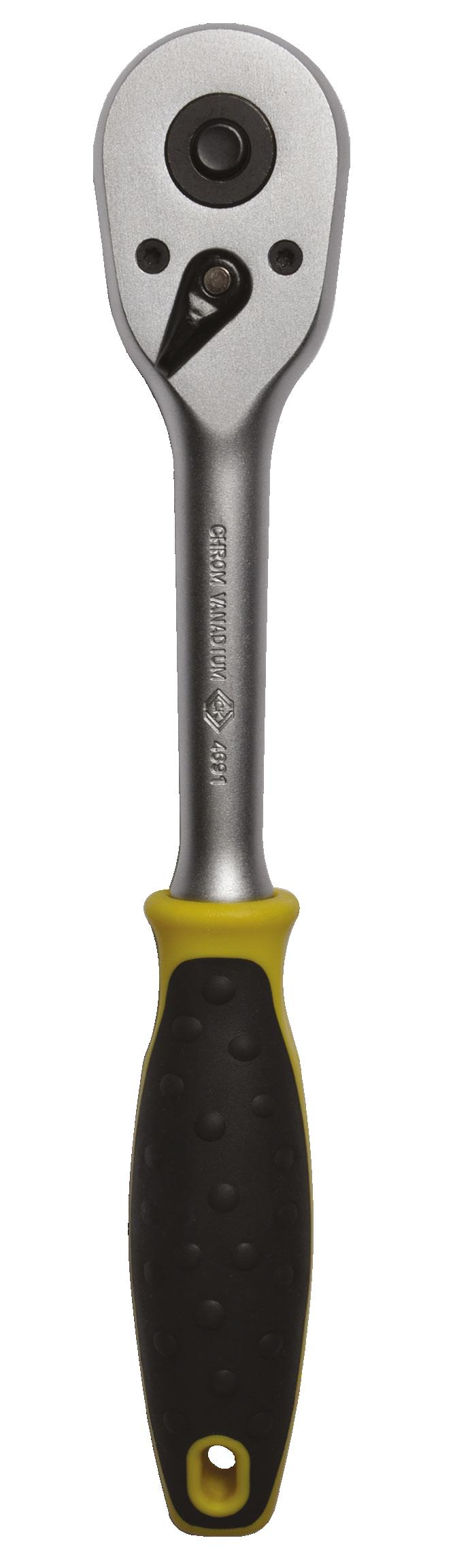 Mécanisme réversible à cliquet à 72 dents pour un ajustement précis dans les endroits restreints.