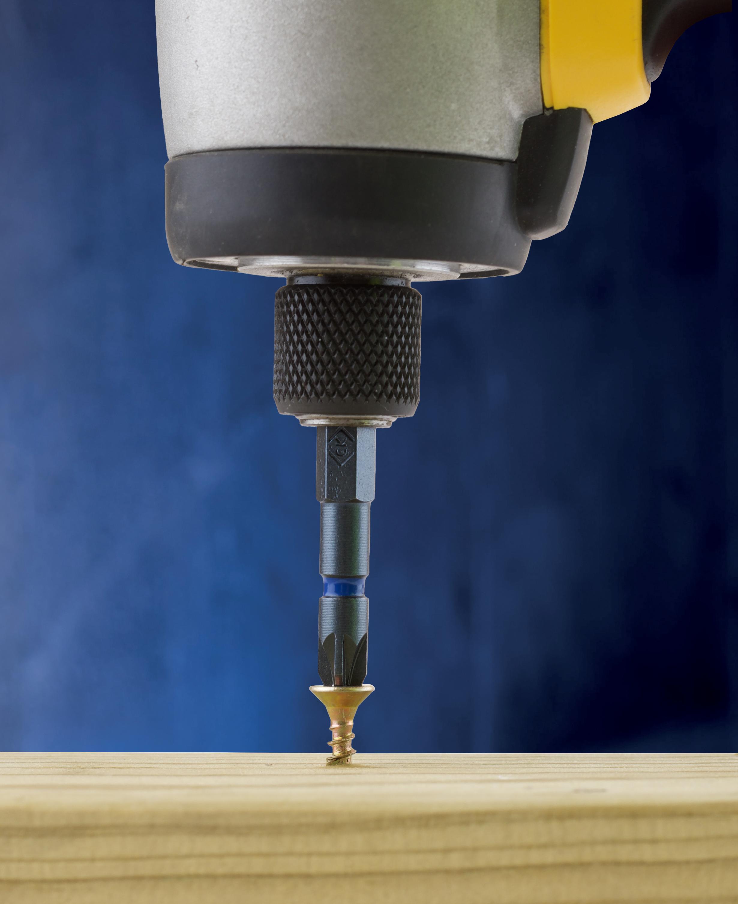 La pointe usinée de précision favorise un logement exact au niveau de la tête de vis et un vissage sans dommages.