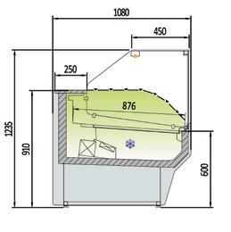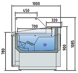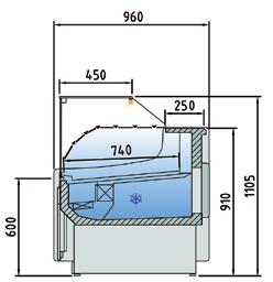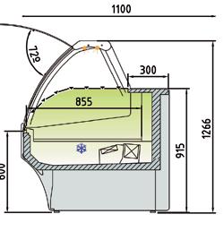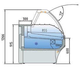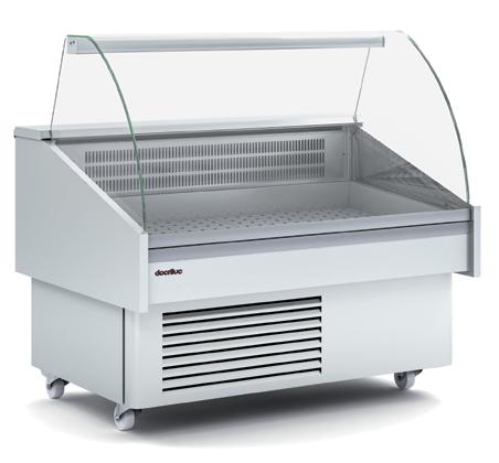 Vetrine per l’esposizione di pesce e frutti di mare canalizzabili con doppio sistema di refrigerazione con piano refrigerato ed evaporatore statico. Profondità 1070 mm. Struttura esterna realizzata in Acciaio Inox AISI 304. Vetro frontale temperato ribaltabile curvo o squadrato(apertura dall’alto). Sbrinamento automatico con evaporazione automatica della condensa. Piano di esposizione e piano di lavoro realizzati in Acciaio Inox AISI 316 con foro di scarico. Spazio espositivo utile di 736 mm di profondità. Controllo elettronico di temperatura Carel. Isolamento in poliuretano espanso con densità 40 Kg/m cubo. Fornita di serie con sistema di Illuminazione con doppia fila di led posizionati sotto il piano superiore. Temperatura -4°/+4°C. Classe climatica 4M1. Fascia frontale in Acciaio Inox. Alimentazione 230V. MARCHIO CE