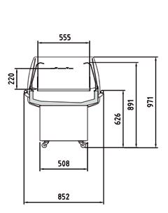 Vetrine refrigerate statiche, non canalizzabili, di ingombro contenuto (profondità solo 800 mm). Struttura esterna realizzata in lamiera di acciaio preverniciata. Vetro frontale temperato ribaltabile (apertura dall’alto). Sbrinamento automatico. Evaporazione automatica della condensa. Piano di esposizione disponibile in 2 versioni, uno in AISI 304 optional e l’altro in lamiera di acciaio con speciale trattamento con resine epossidiche atossiche anti corrosione, idoneo per alimenti. Piano di lavoro operatore in Acciaio Inox AISI 304. Spazio espositivo utile di 541 mm di profondità. Illuminazione a led di serie posizionata sotto il piano superiore. Riserva refrigerata con porte con apertura utile mm 440X270. Controllo elettronico di temperatura Carel Isolamento in poliuretano espanso con densità 40 Kg/m cubo. Spalle in ABS termoformate e coibentate (spessore 40 mm). Parte superiore in laminato melaminico. Rifiniture con profili in alluminio. Temperatura -1°/+5°C. Classe climatica 4M1. Indicatore di temperatura analogico posizionato all’interno della vetrina. Fascia frontale disponibile in 8 differenti colori senza sovrapprezzo, colore nero di serie. Ripiano intermedio di cristallo e scorrevoli in plexiglas (optional). Alimentazione 230V. MARCHIO CE