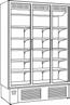 Espositori con refrigerazione ventilata con porte a vetro, utilizzabili in base ai modelli sia a temperatura positiva che negativa. Modelli a 2, 3, 4 porte. Struttura esterna realizzata in lamiera di acciaio preverniciato e parte interna in lamiera di acciaio con speciale trattamento con resine epossidiche atossiche anticorrosione (idonee per alimenti). Ripiani in lamiera verniciata atossica (idonea per alimenti), regolabili in altezza e dotati di porta prezzo. Illuminazione superiore a tubo led. Isolamento di 70 mm di spessore in poliuretano espanso con densità 40 Kg/m cubo. Termostato elettronico Carel. Temperatura BT -15°/-18°C. Classe climatica 4M1. Sbrinamento automatico. Evaporazione automatica della condensa. Struttura esterna in colore bianco o nero. A richiesta con sovrapprezzo interno in colore nero. Alimentazione 230V. MARCHIO CE
