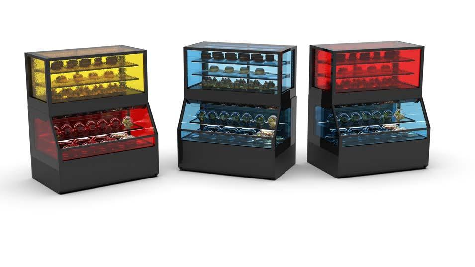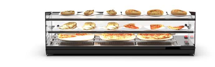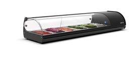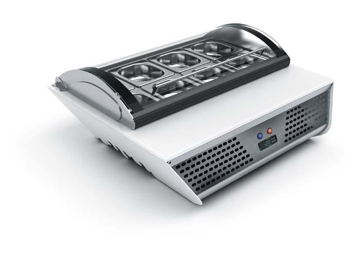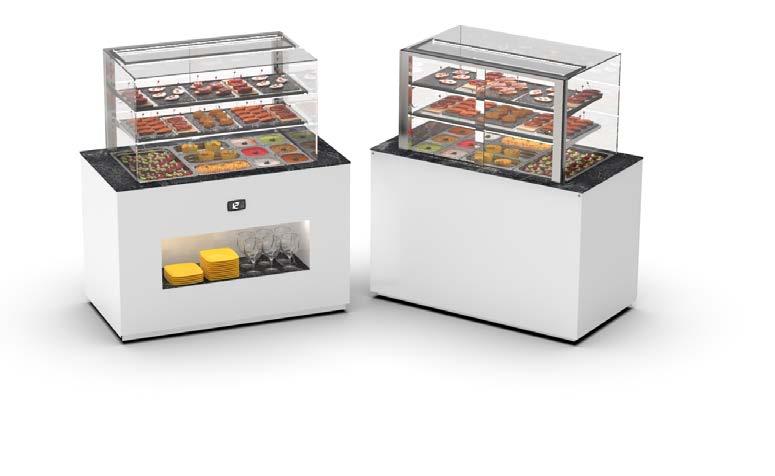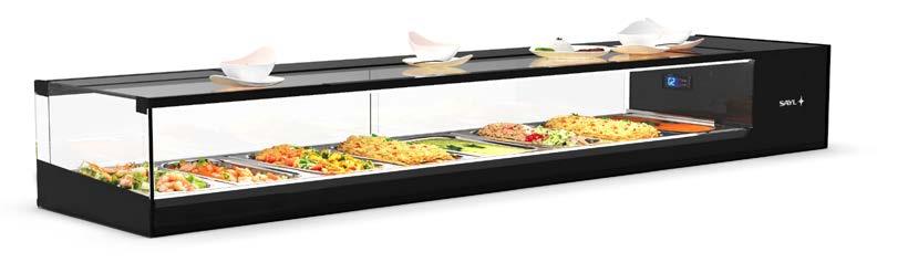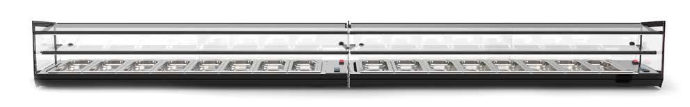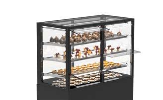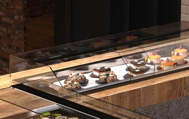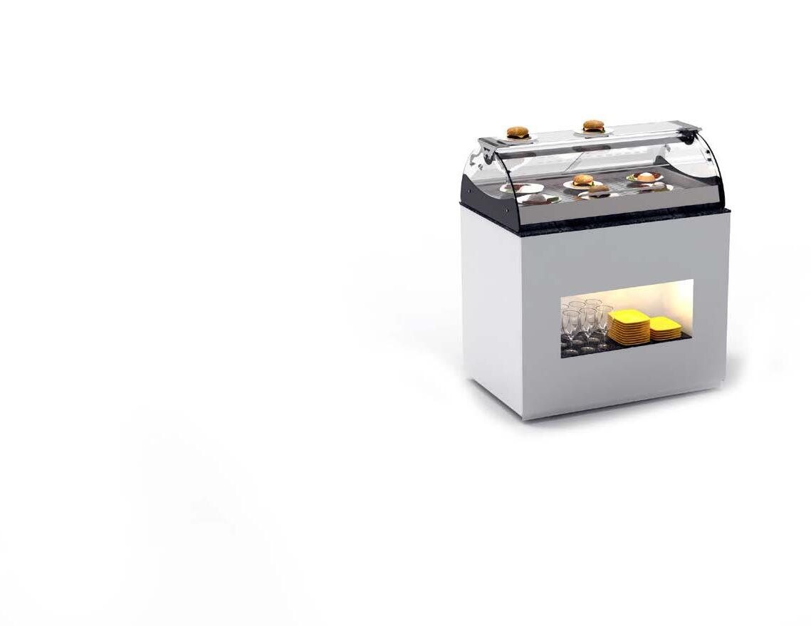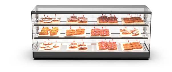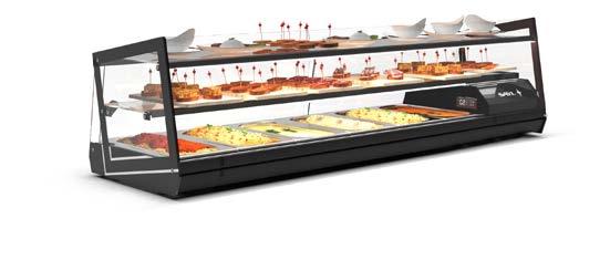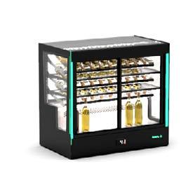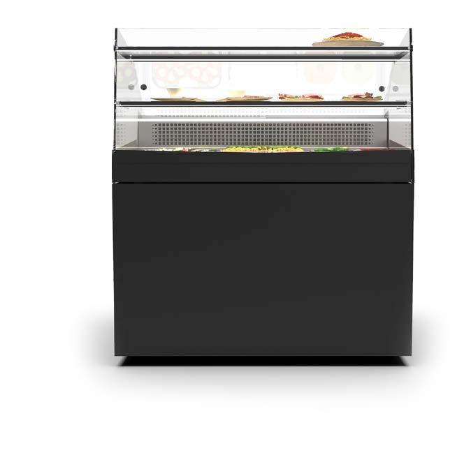 Su tutti i modelli refrigerati e riscaldati, il piano di fondo è realizzato in cristallo temperato di colore nero.