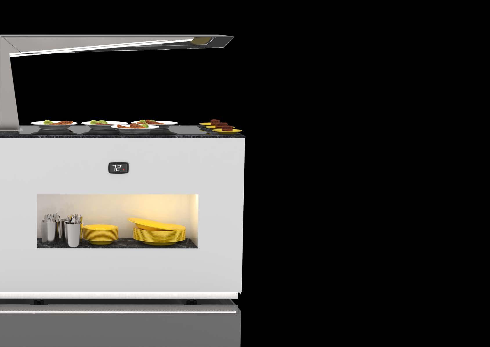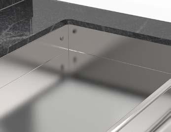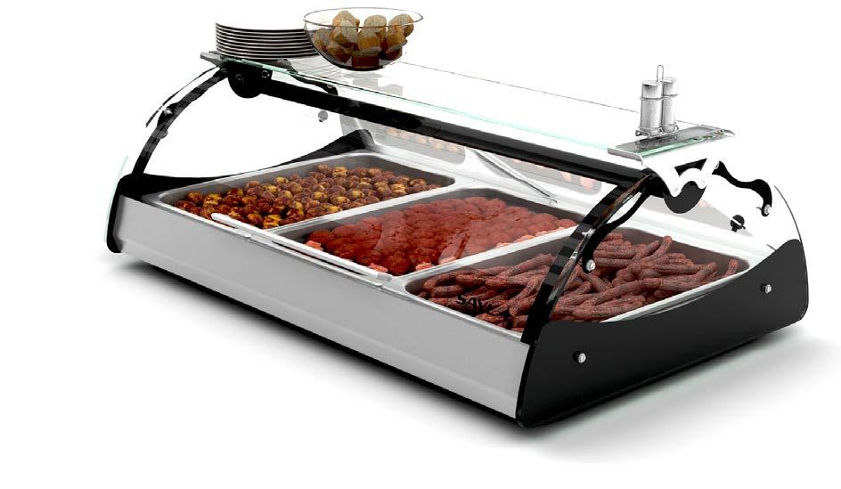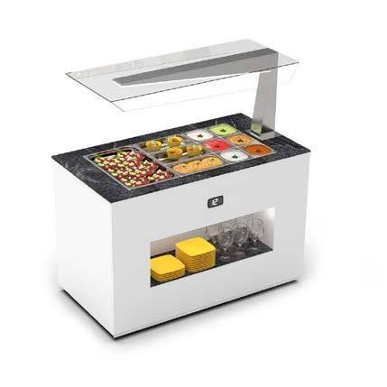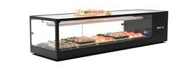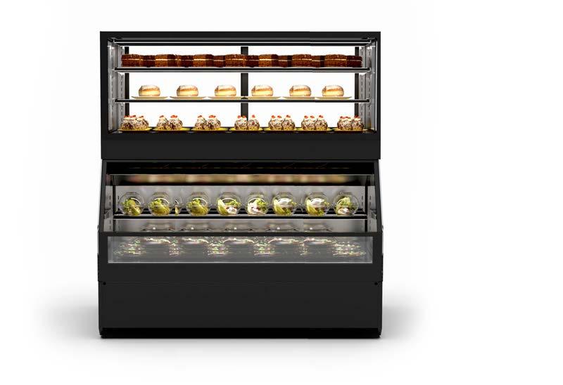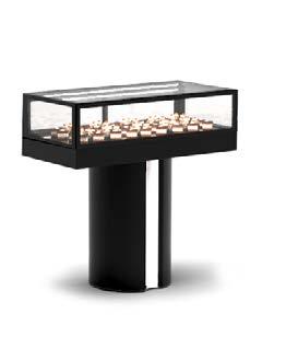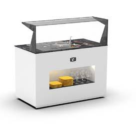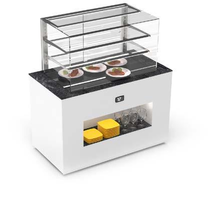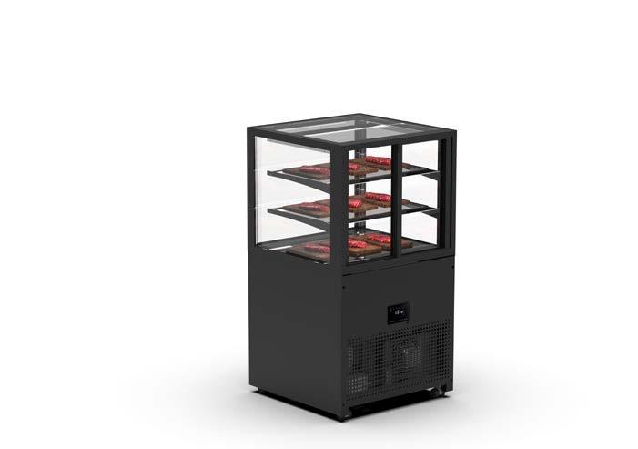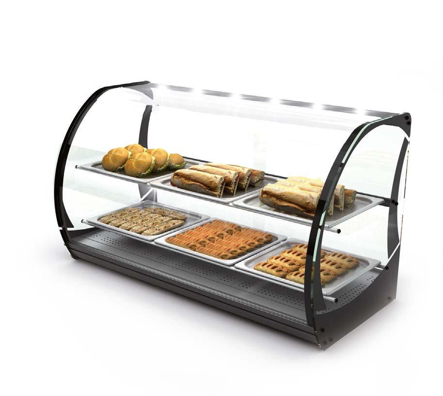 Su tutti i modelli refrigerati e riscaldati, il piano di fondo è realizzato in cristallo temperato di colore nero.