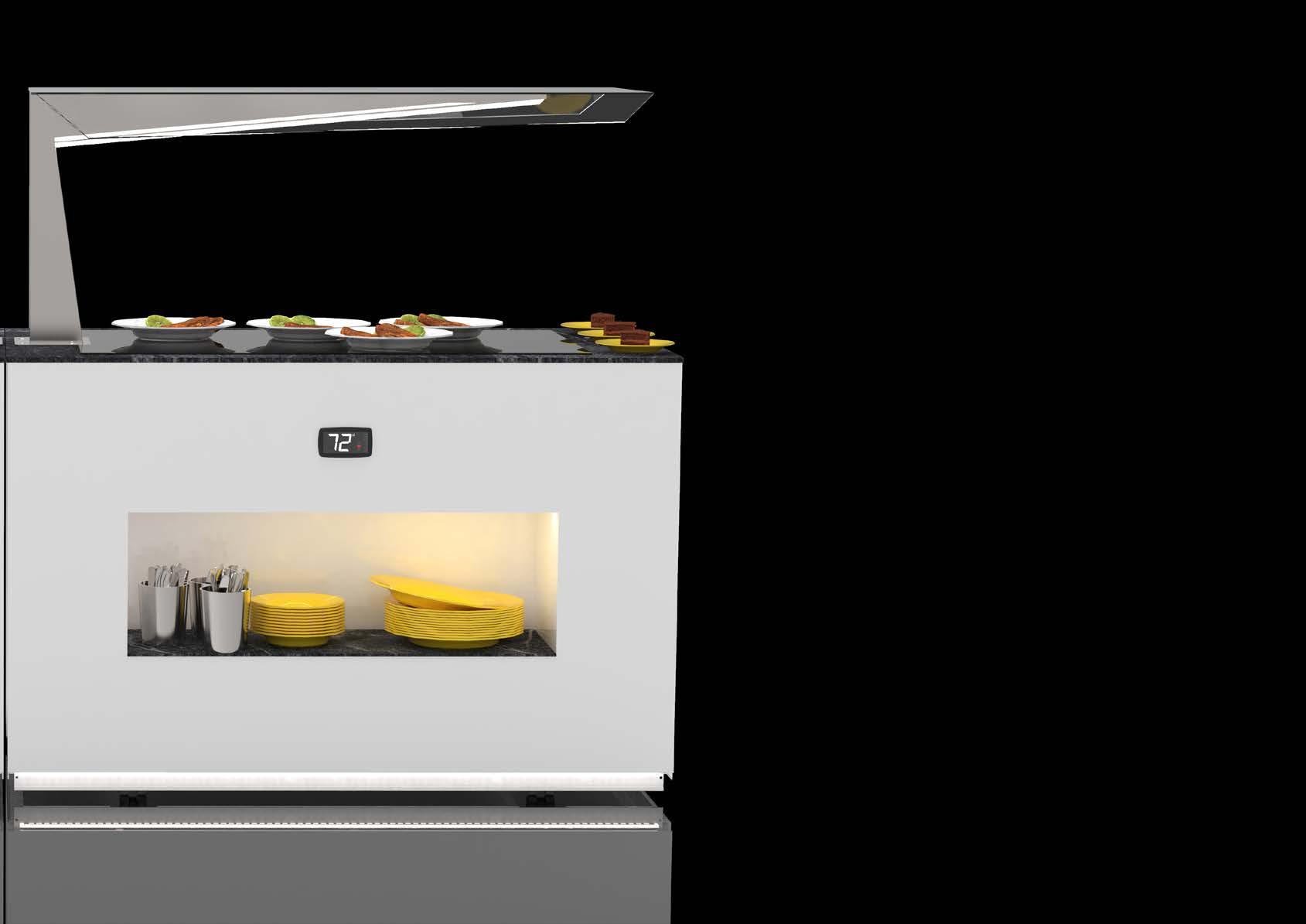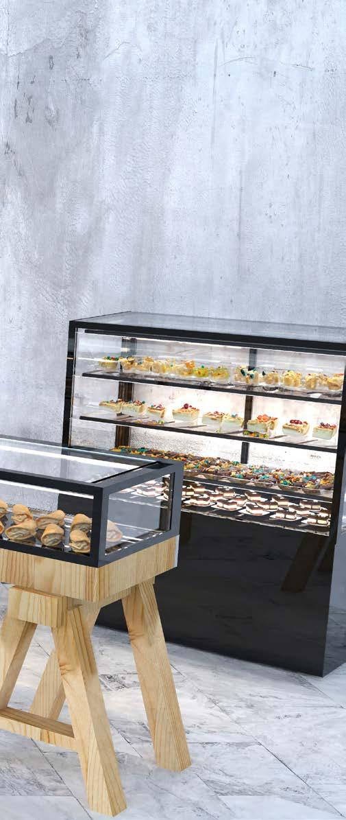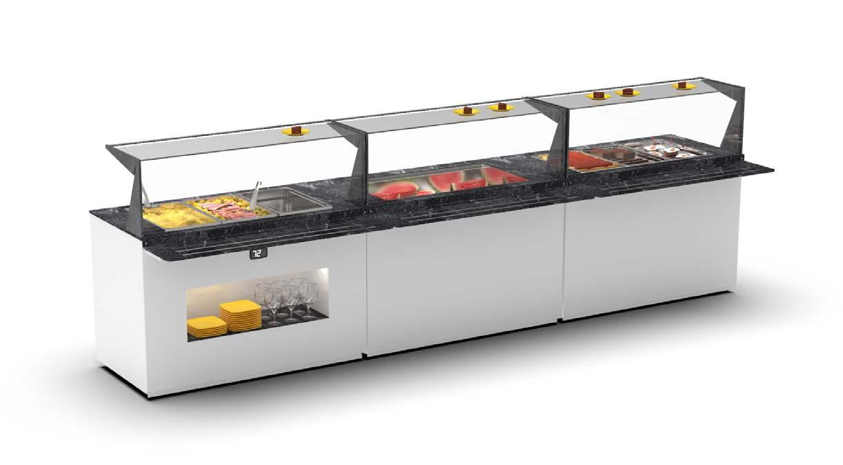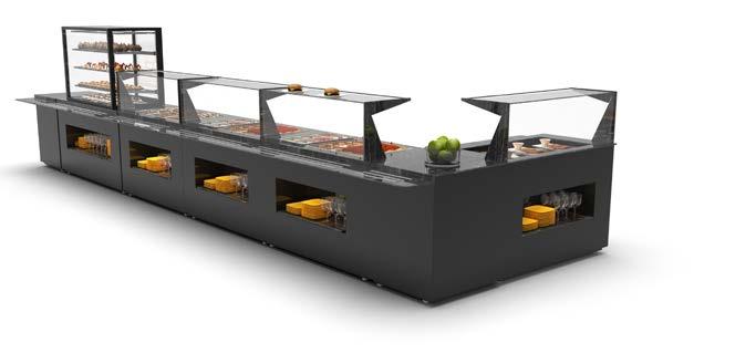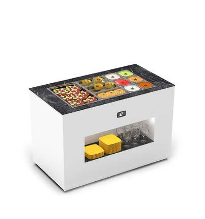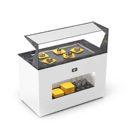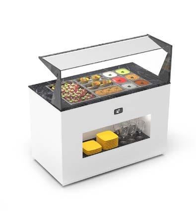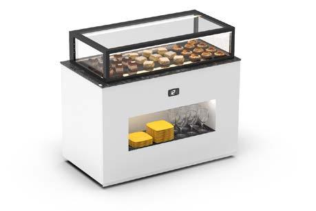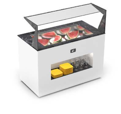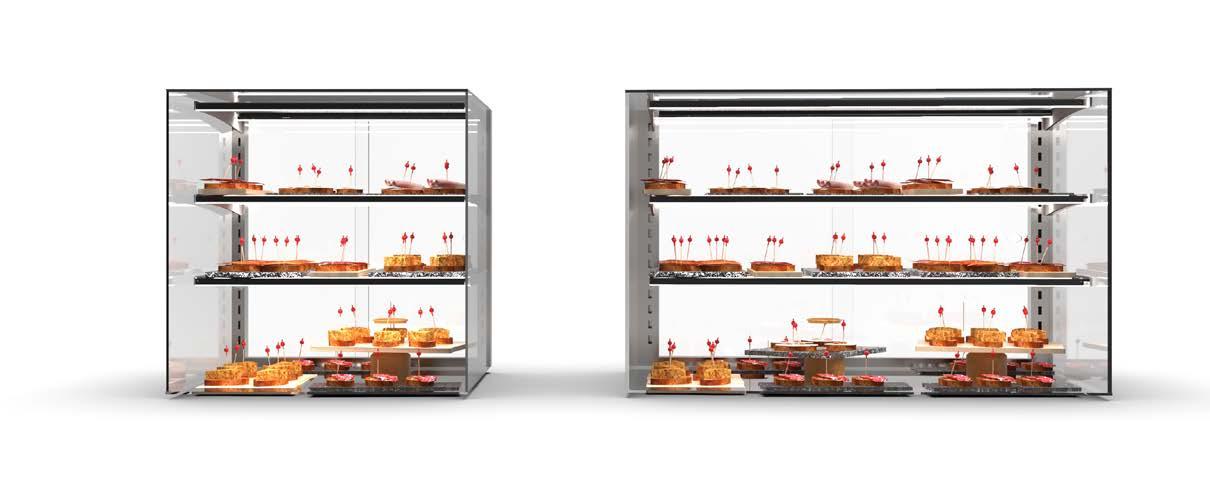 Possibilità di utilizzare la vetrina con il concetto autoservizio per prodotti pronti all’uso grazie all’accesso frontale. OPZIONE AUTOSERVIZIO