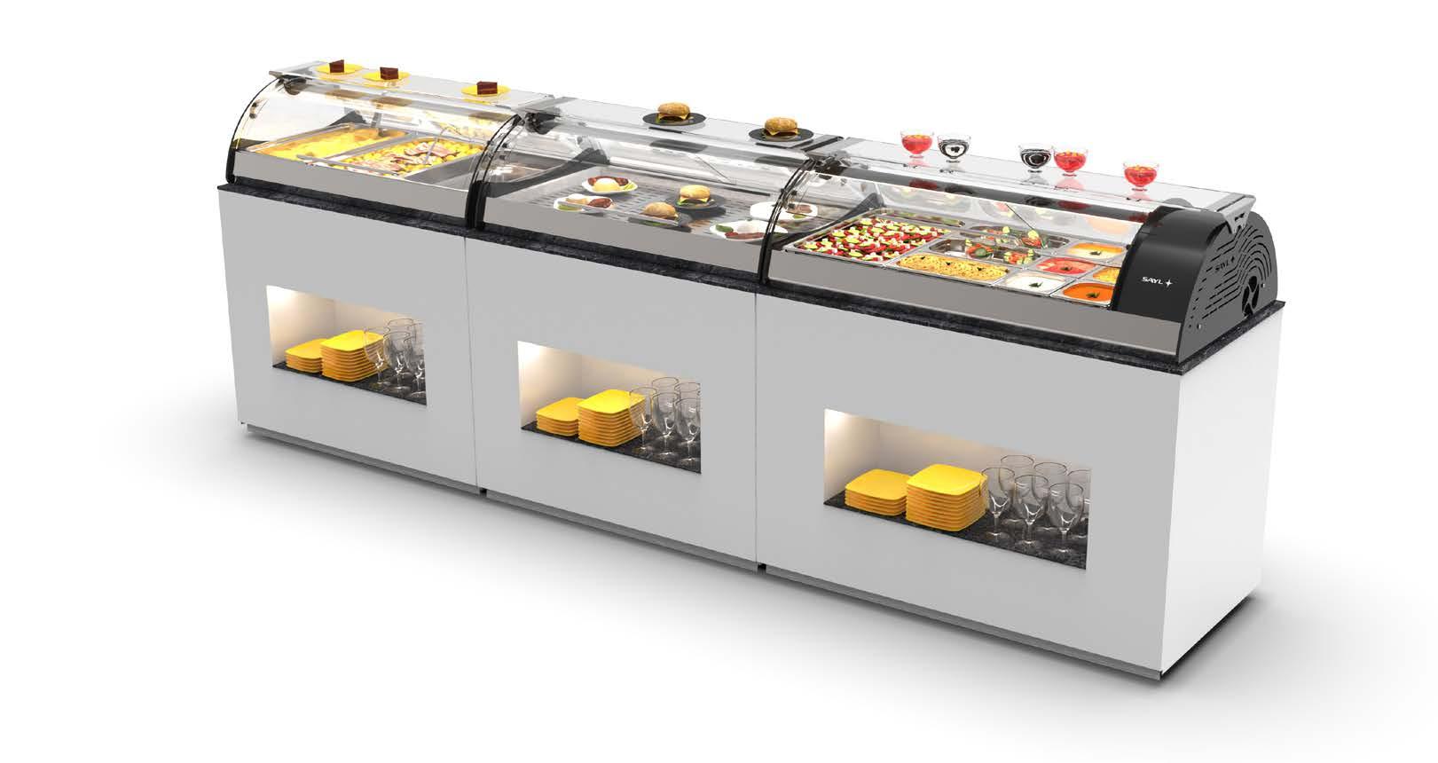 Sayl ha progettato complementi per offrire soluzioni nella presentazione e conservazione alla temperatura ottimale, per piccoli cocktail, buffet e autoservizio, sia per alimenti che per ogni tipo di bevanda.