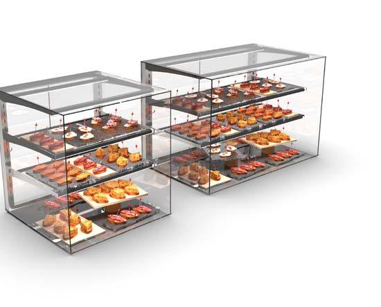Queste vetrine sono ideali per prodotti ad alta rotazione che non richiedono una conservazione prolungata.Inoltre, si caratterizzano per il loro design compatto e la facilità di pulizia.