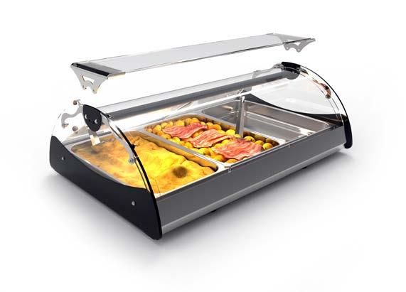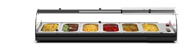 Le vetrine con scaldavivande a bagnomaria sono progettate per mantenere la temperatura degli alimenti tramite l’uso di acqua calda, fornendo un modo delicato e uniforme di mantenere la temperatura degli alimenti, evitando il surriscaldamento o il raffreddamento eccessivo grazie all’inerzia termica.