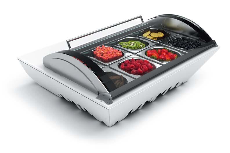 Tuttavia, come nei modelli di refrigerazione per contatto, si consiglia di fare attenzione a posizionare prodotti sensibili direttamente sulla piastra fredda per evitare possibili bruciature dovute al freddo diretto o l’accumulo di umidità a causa della condensa che la piastra potrebbe generare.