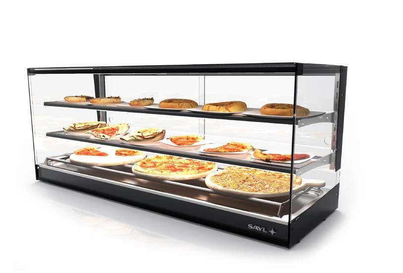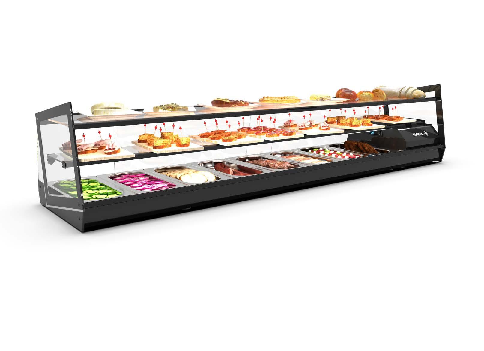 Le vetrine di calore a secco “Sahara” sono perfette per mantenere l’uniformità della temperatura e un ambiente secco. Sono adatte a una vasta gamma di alimenti, dai piatti principali come carni arrosto o pollo al forno fino a prodotti di panetteria come pane, pasticcini caldi, fritti e tempura.