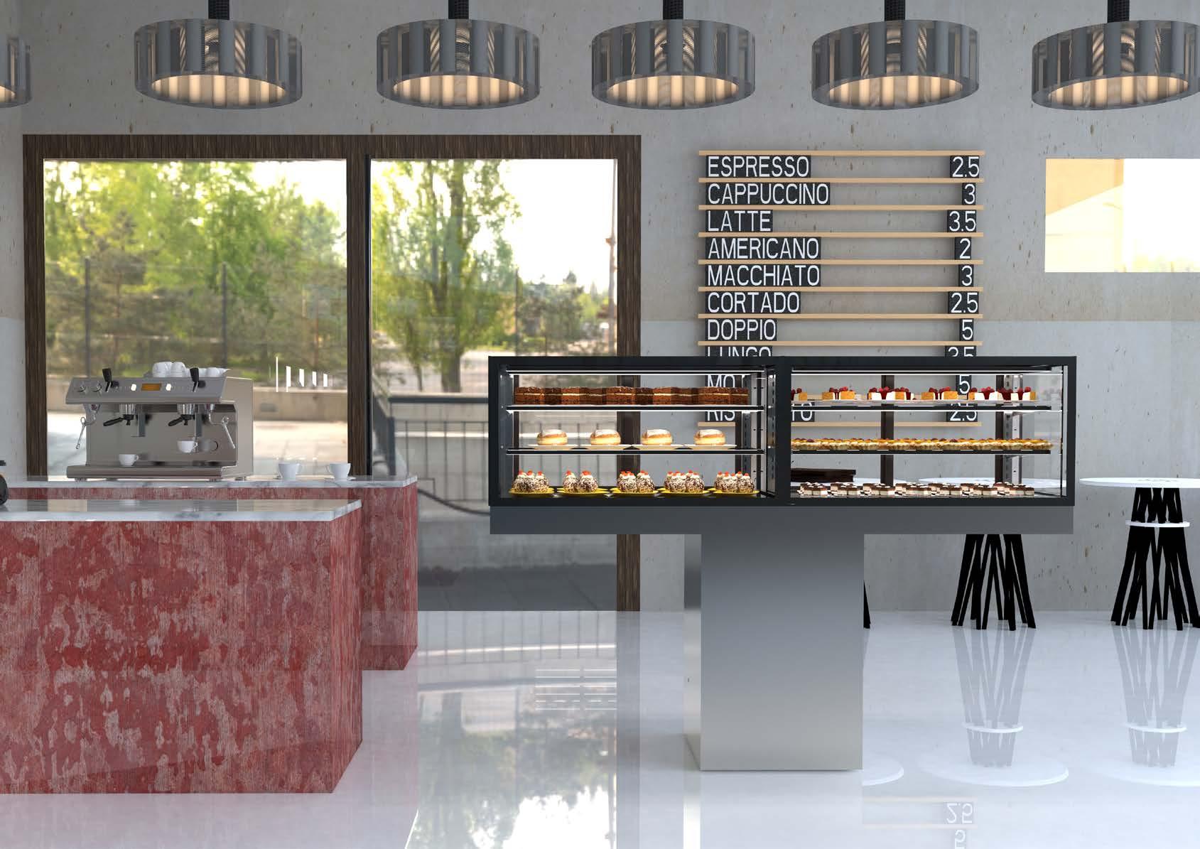 Queste vetrine ottimizzano al massimo lo spazio espositivo in relazione alla potenza frigorifera, traducendosi in una maggiore capacità espositiva e una eccellente visibilità, migliorando così la presentazione e l’esperienza del cliente.