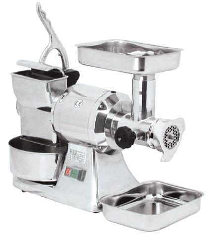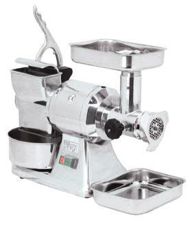 TRITACARNE con 3 trafile in metallo, con foro diam.2/4/6 mm., più accessorio per insaccare le salsicce.