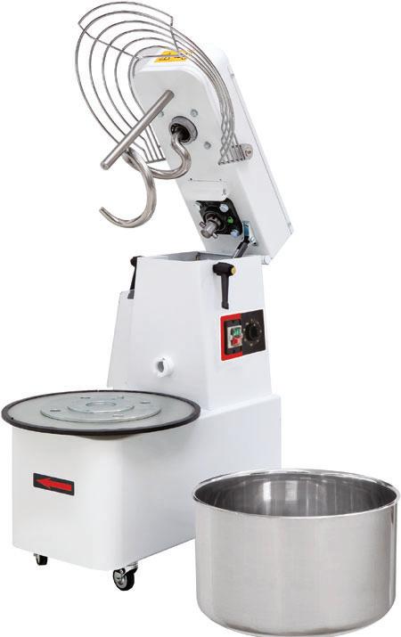 Impastatrici planetarie da banco da 7, 10 e 20 litri e da pavimento da 30 lt., con motori ventilati da 450, 1100 e 1500 W (escluso mod. PL7ECO che ha il motore CC) alimentati a 230 Volt. Cambio meccanico a 3 velocità mod.lli PL10ECO, PL20ECO e PL30ECO, variatore di velocità mod. PL7ECO (quest’ultimo modello è indicato per impasti morbidi e per impasti di media consistenza, es. pane e pizza, si consiglia max 1 Kg. di farina, non è adatto per impasti duri, es. taralli, pasta all’uovo). Sistema di riduzione tramite ingranaggi in metallo. Struttura realizzata in fusione di alluminio colore grigio mod. BL7ECO, in fusione di ghisa colore grigio mod.lli PL10ECO e PL20ECO, in carpenteria smaltata colore grigio mod. PL30ECO. Vasca in Acciaio Inox AISI 304. Fornite di 3 utensili: Frusta in fusione di alluminio e fili in acciaio, spatola e gancio in fusione di alluminio. Dispositivo di sicurezza sul sollevamento della vasca e sulla griglia. Pulsante MARCIA/ARRESTO. MARCHIO CE