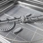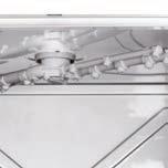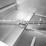 • Bracci di lavaggio in Inox e quattro cicli di lavaggio da 1,2,3,4 minuti permettono di lavare fino a 60 ceste pane/h, 300 pentole/h, 800 vassoi/h