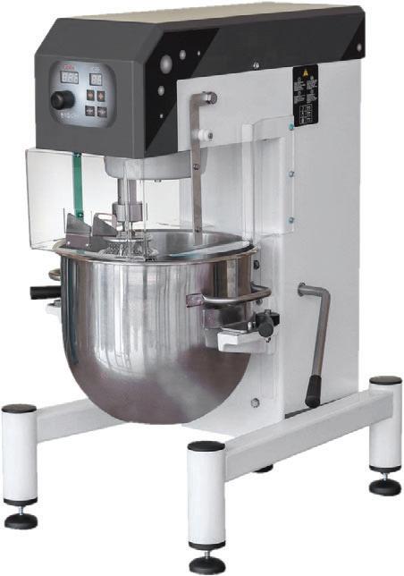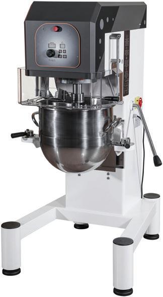 Mescolatrici planetarie professionali costruite con struttura in metallo verniciato (testata in Acciaio Inox verniciato colore antracite) e gli standard di potenza, robustezza e solidità che contraddistingue la produzione Made in Italy. Dotate di piedini antivibrazione, vasca, griglia di protezione con convogliatore per ingredienti, frusta a fili, spirale e spatola tutto in acciaio inox 18/10. Sollevamento della vasca a leva servoassistita (mod. PL20/30/40/60), con dispositivo di sicurezza. Eccentrico in alluminio alimentare per evitare eventuali ossidazioni che possono entrare in contatto con il prodotto. Albero porta utensili in acciaio inox 18/10. Potenti motori asincroni trifase. Velocità del planetario da 40 a 150 Rpm per mod. PL20/30/40/60 e da 40 a 200 Rpm per mod. 8/10, controllati da un variatore di velocità elettronico con inverter che determina un rapporto utensile/planetario pari a 1/3. La trasmissione ad ingranaggi autolubrificanti con riduttore meccanico sul blocco testata per il movimento del planetario, garantisce l’alta affidabilità per le continue lavorazioni. Pannello di comando 24Volt: pulsante ON/OFF, TIMER (da 0 a 99 min.), VARIATORE ELETTRONICO DI VELOCITA’, FUNGO DI EMERGENZA. MARCHIO CE