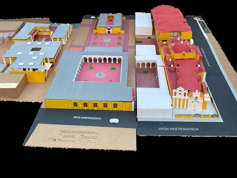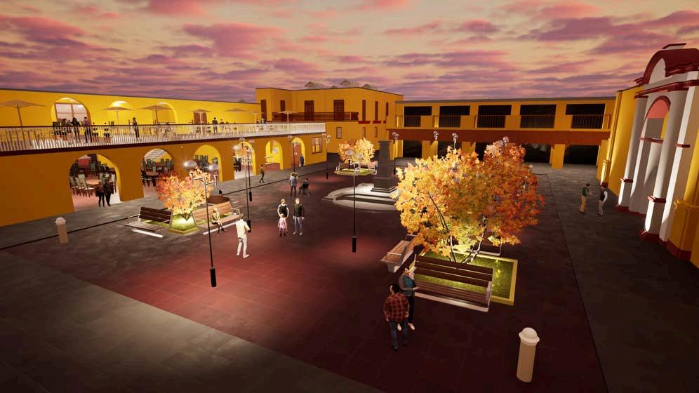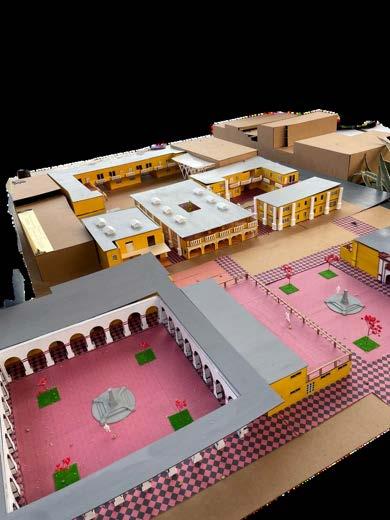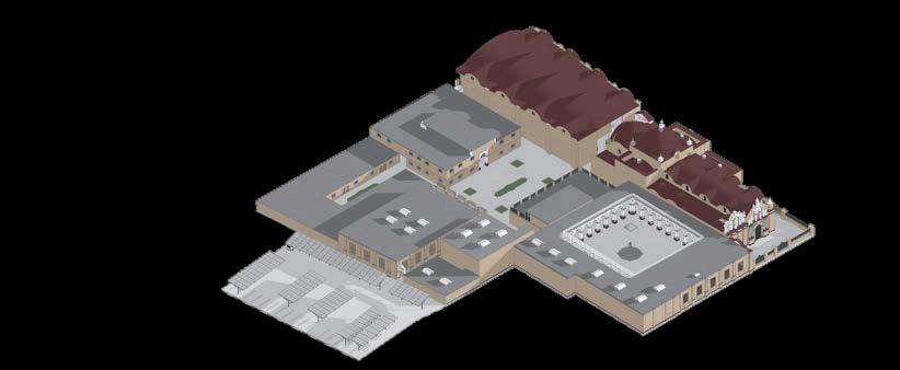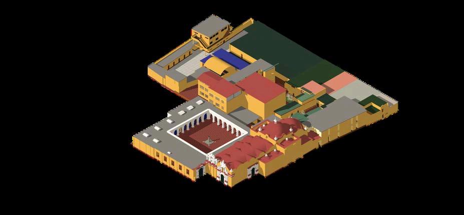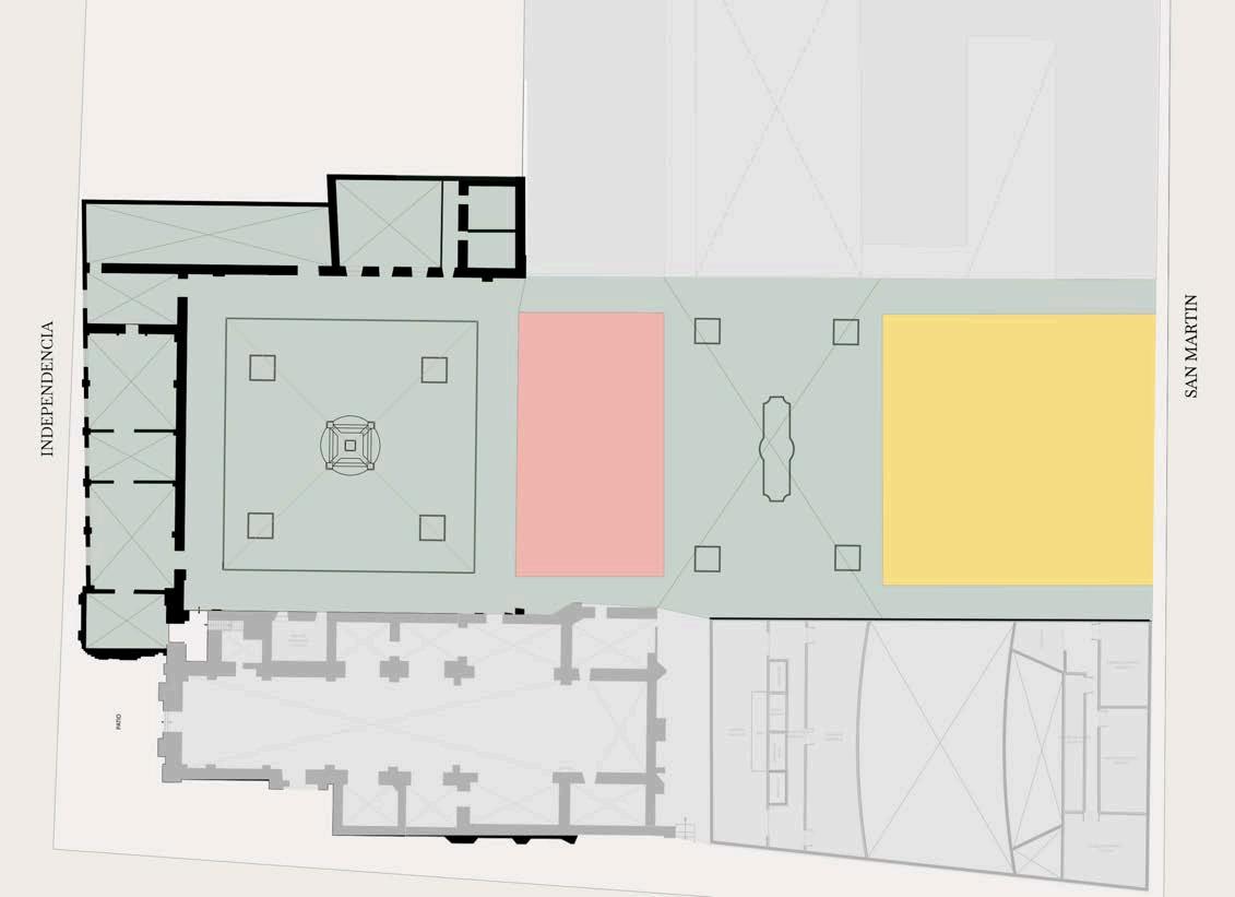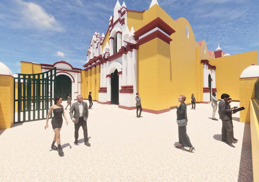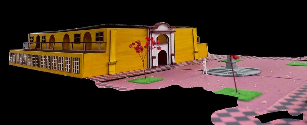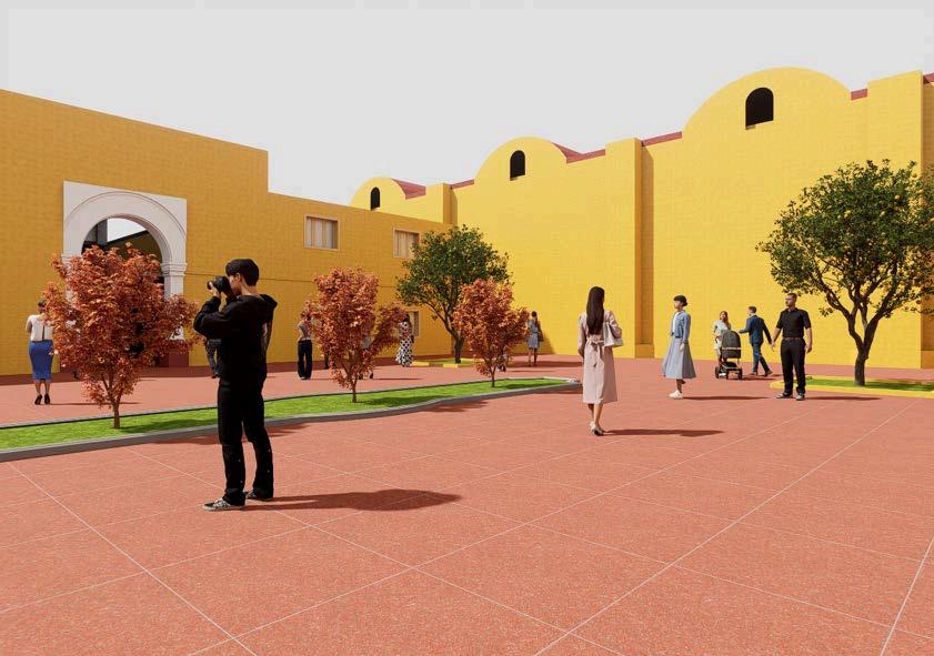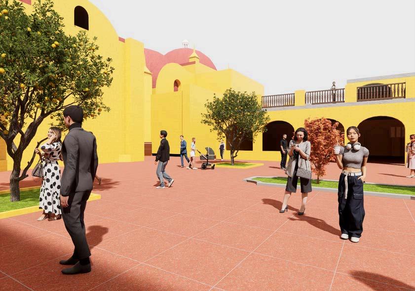 áreas, sino que también genera una transiciónamableentrelopatrimonial conservado y las nuevas intervenciones, asegurando que el recorrido peatonal se perciba coherente, secuencial y cargado de identidadinstitucional.