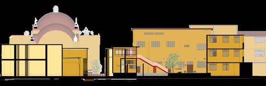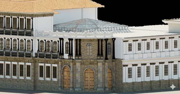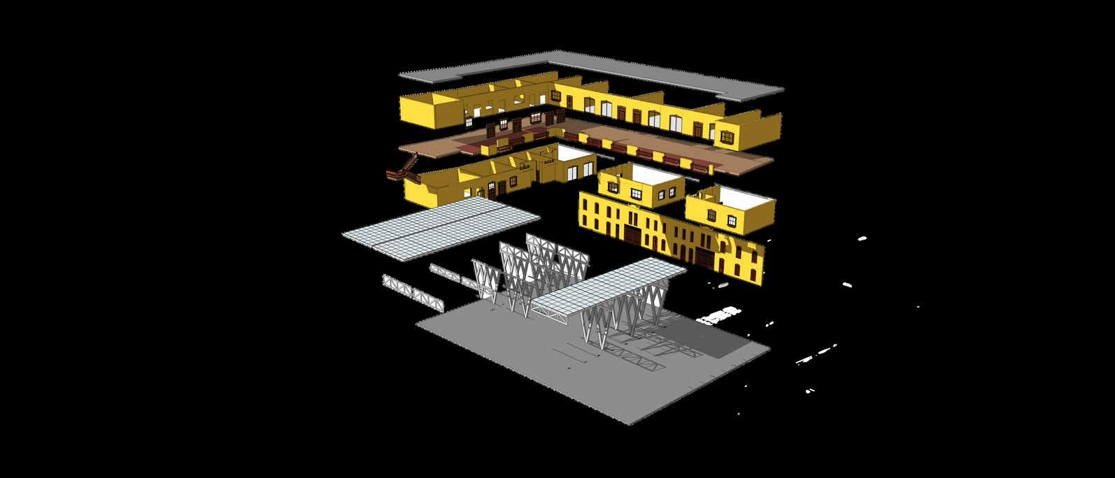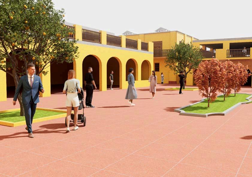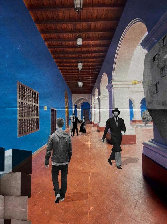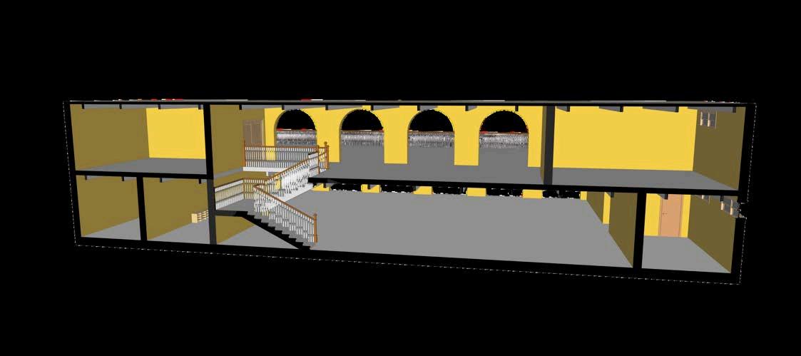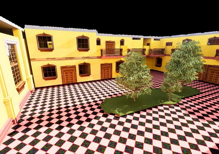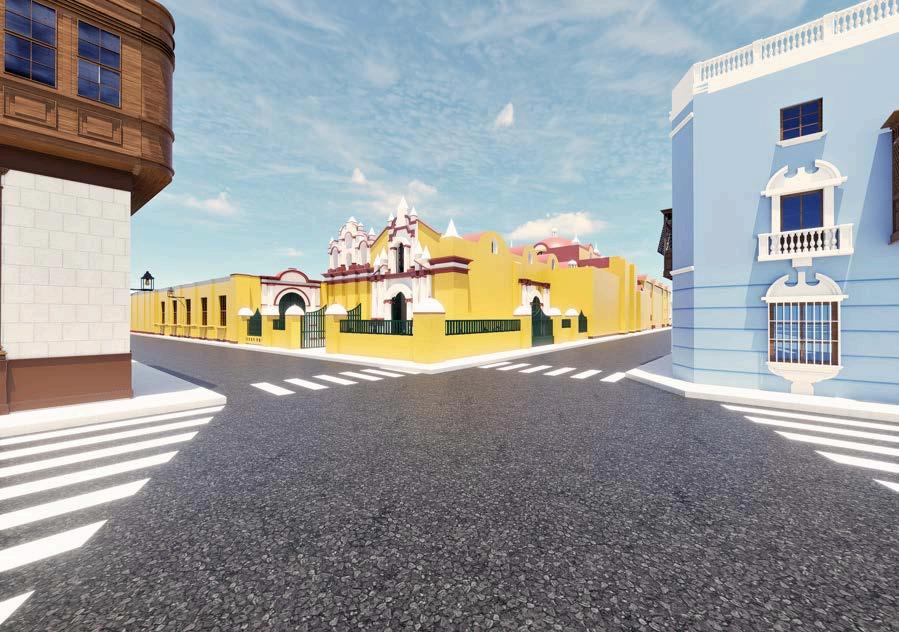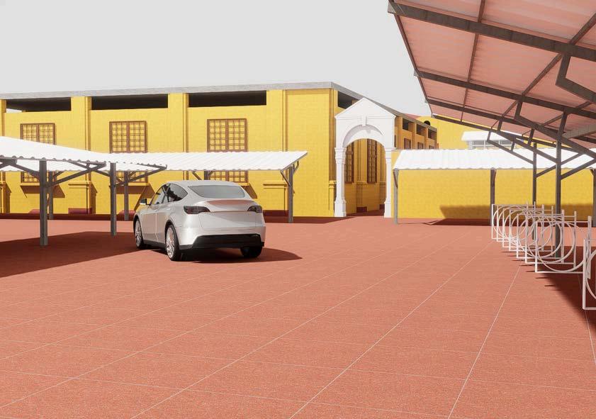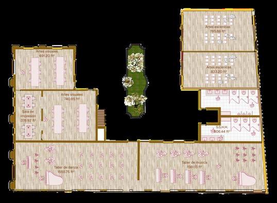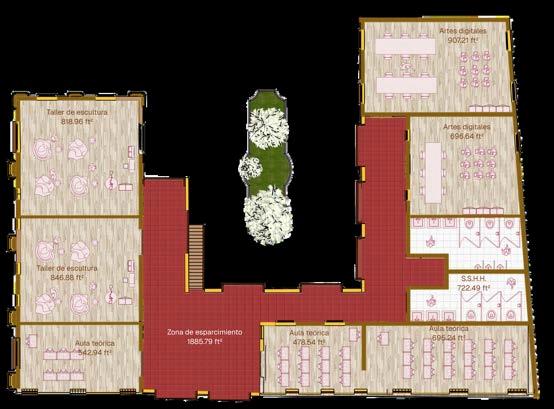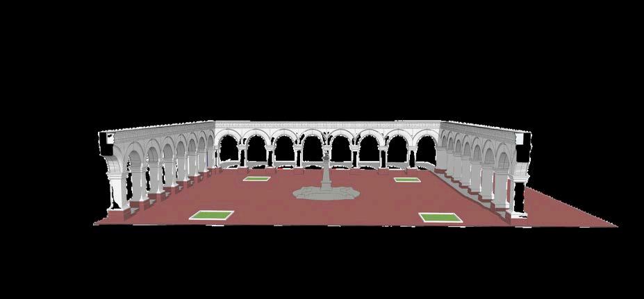 áreas, sino que también genera una transiciónamableentrelopatrimonial conservado y las nuevas intervenciones, asegurando que el recorrido peatonal se perciba coherente, secuencial y cargado de identidadinstitucional.