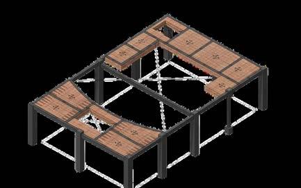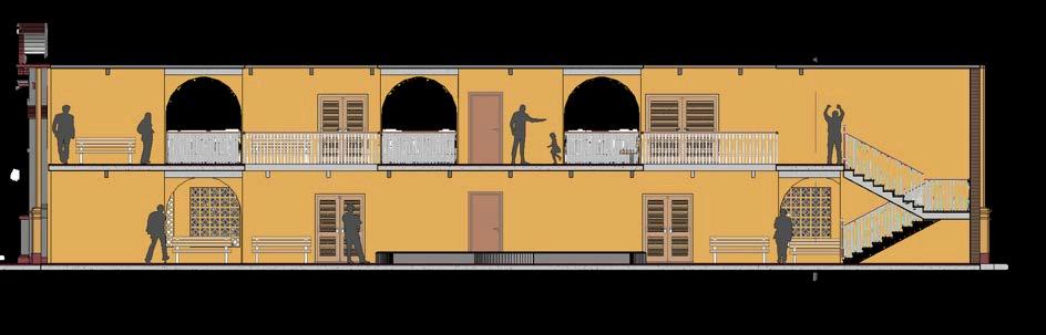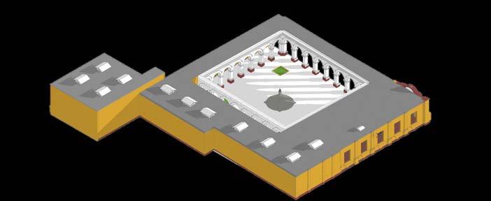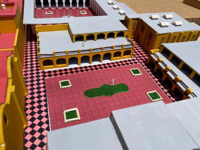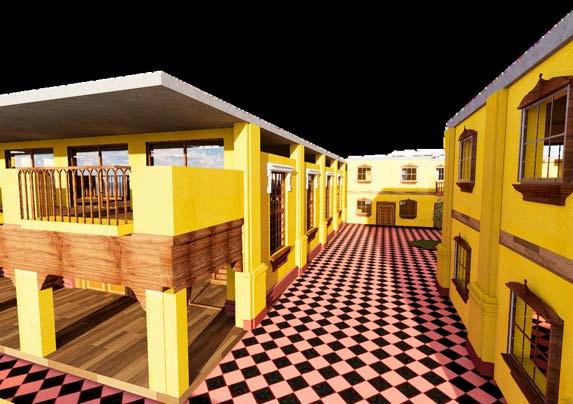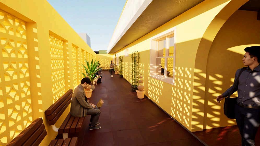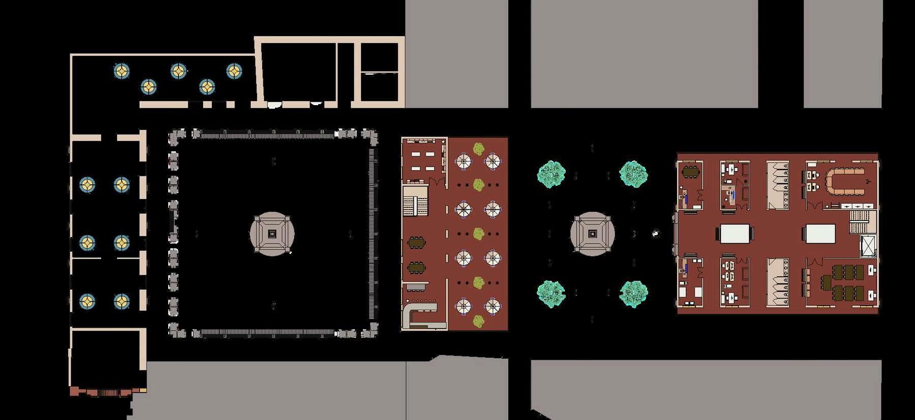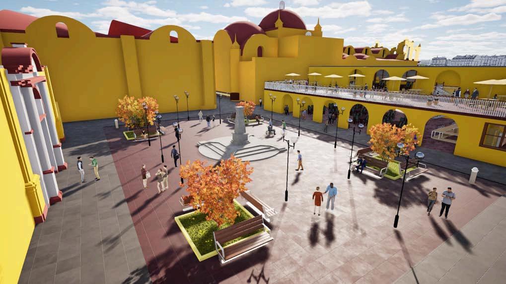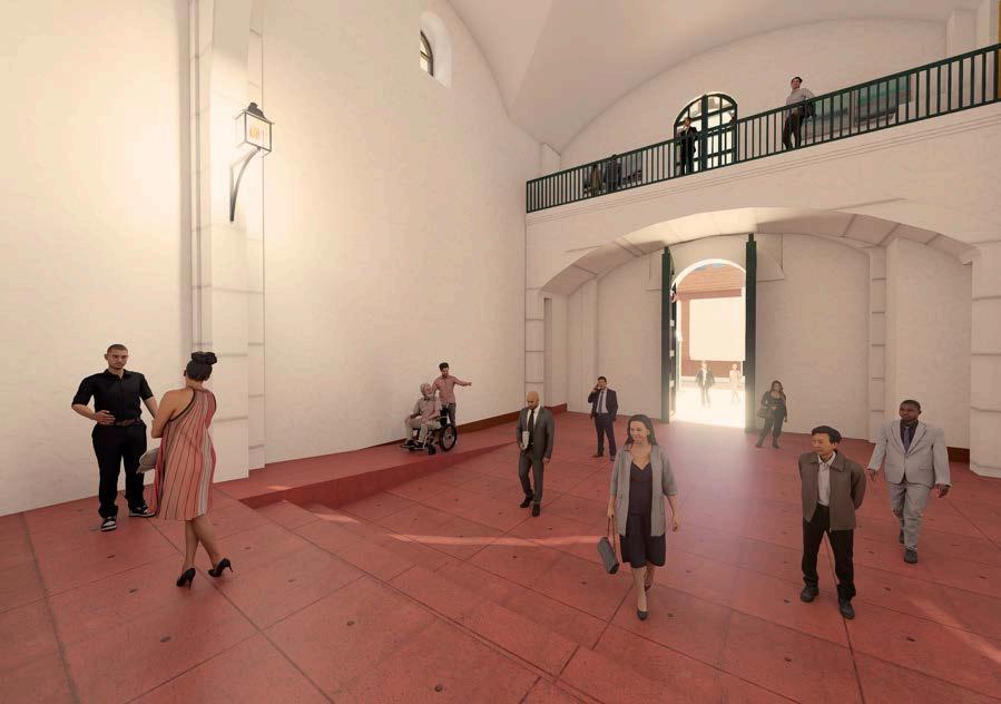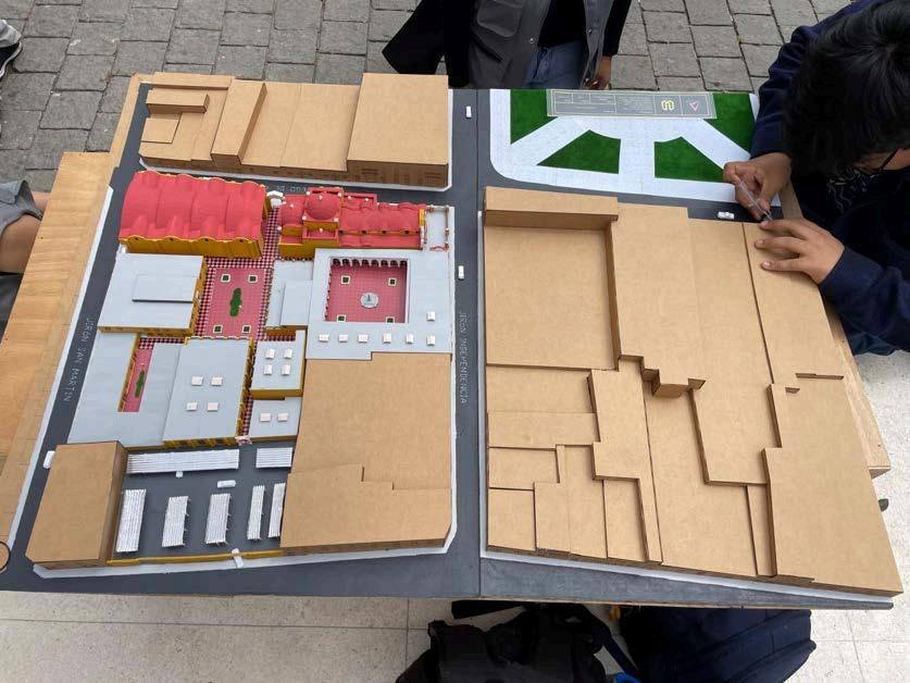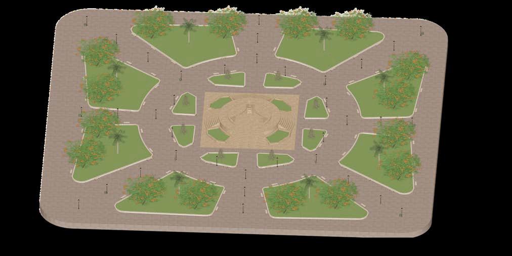áreas, sino que también genera una transiciónamableentrelopatrimonial conservado y las nuevas intervenciones, asegurando que el recorrido peatonal se perciba coherente, secuencial y cargado de identidadinstitucional.