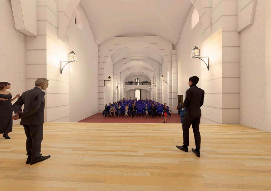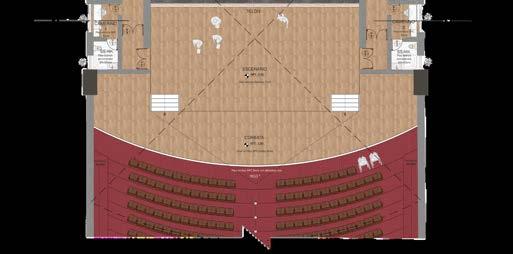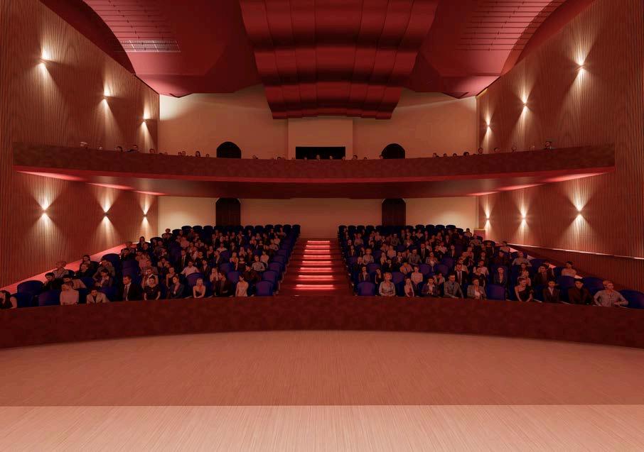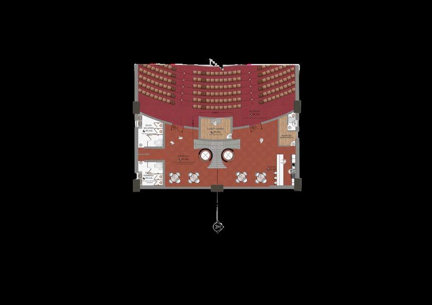 El auditorio conserva su función principal como espacio emblemático para conferencias, eventos y presentaciones, pero su distribución interna se reorganiza para lograr un usomuchomáseficientedelespacio.