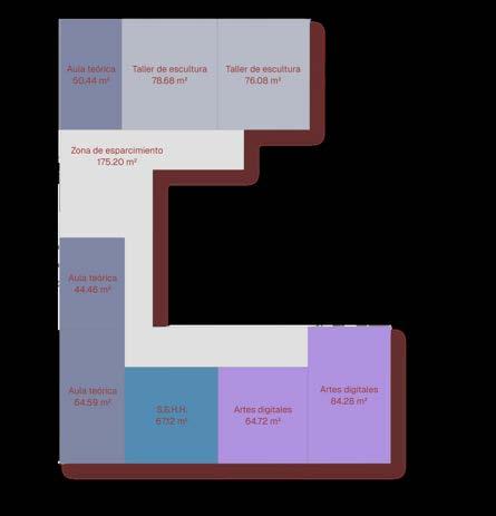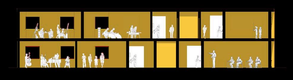 una sensación de recogimiento y proximidad. Estos espacios están destinados a actividades que requieren concentración y contacto directo, como oficinas, talleres artísticos, salas de reunión o pequeños espacios de residencia temporal para artistas. Su tamaño favorece el trabajo individual o en grupos pequeños, propiciando un ambientetranquiloysilencioso.