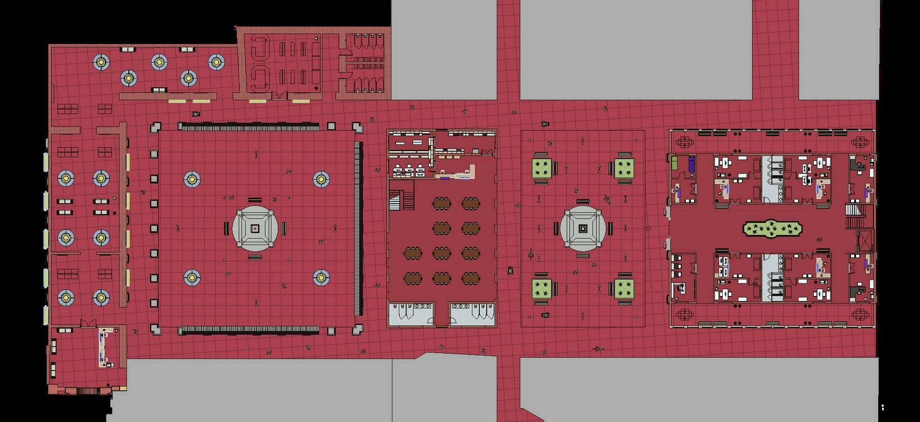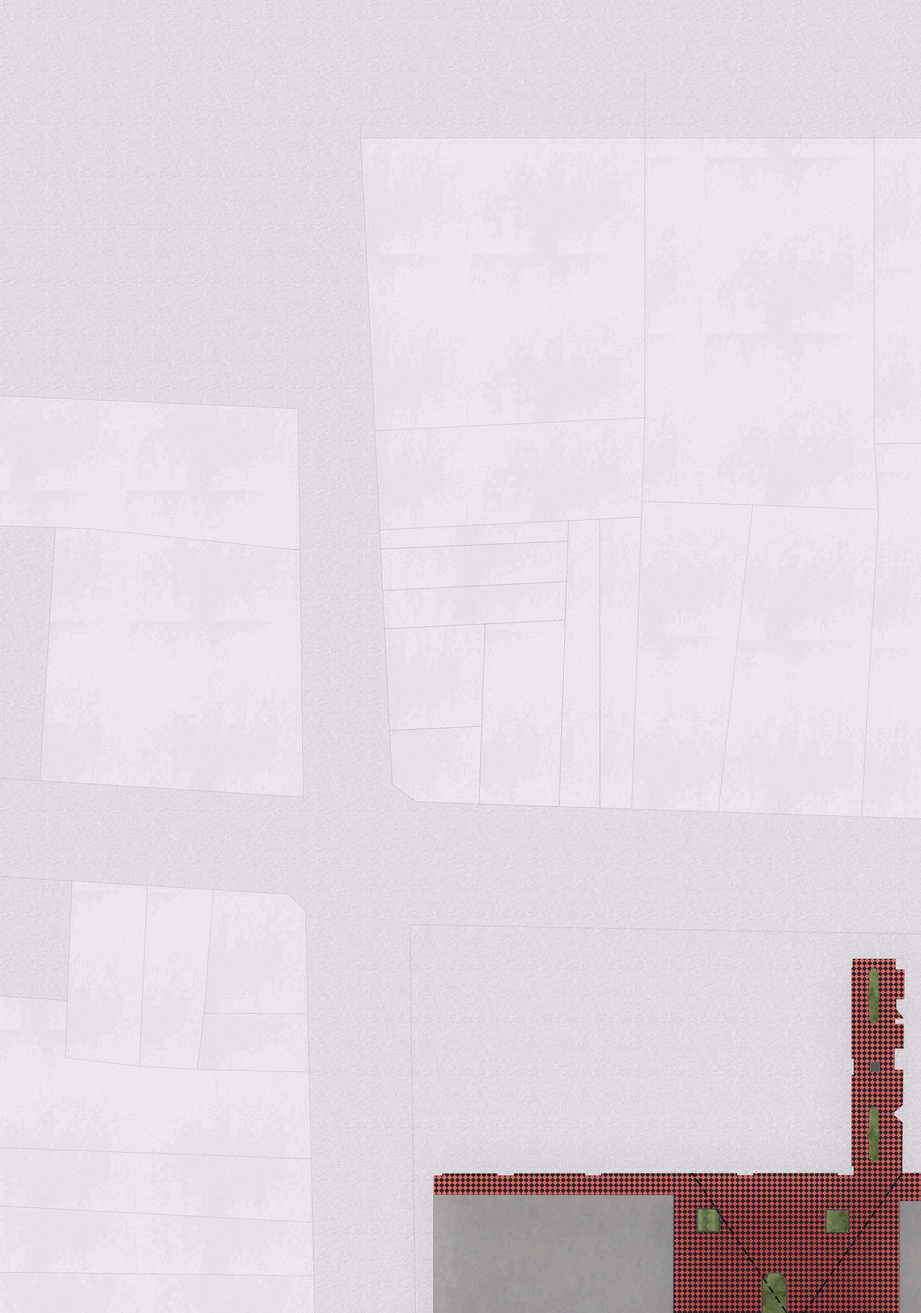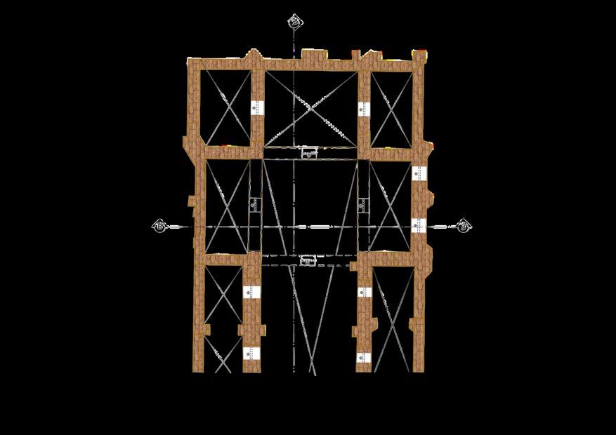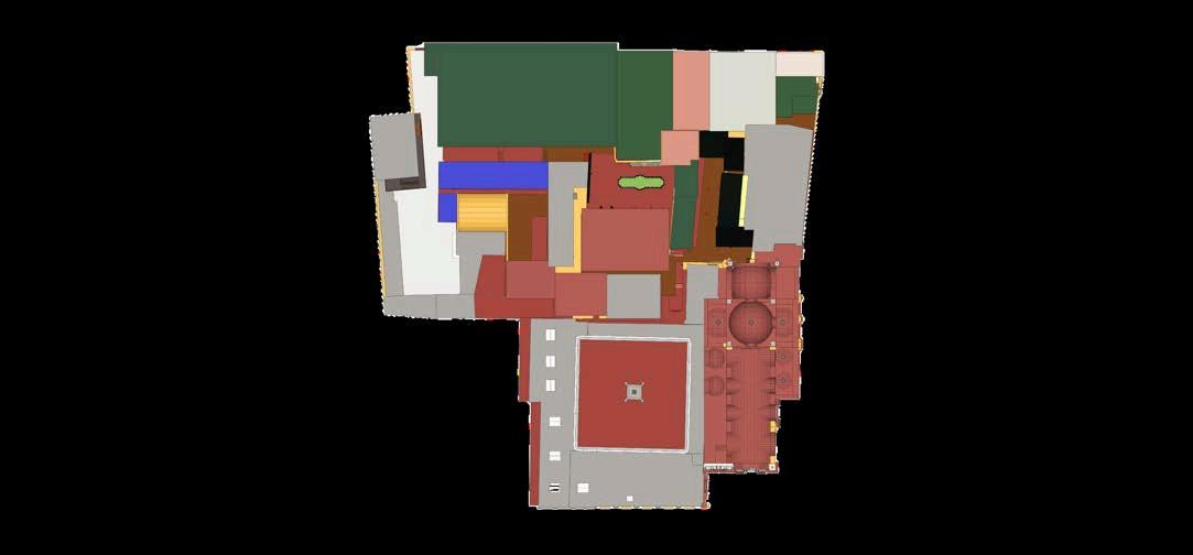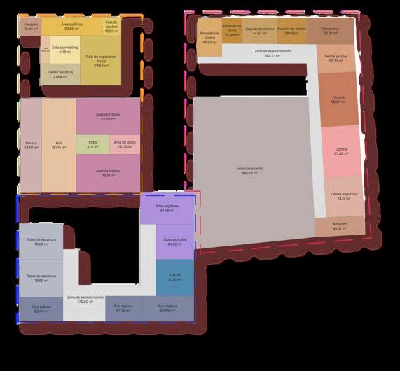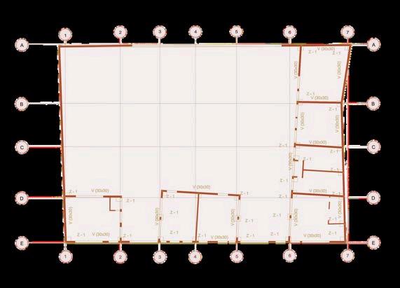 Esta nueva retícula de ejes no solo corrigeeldesordenanterior,sinoque también define una estructura organizativa coherente que permite conectar los espacios conservados conlosnuevosvolúmenes,facilitando la transición entre subzonas y fortaleciendolaidentidadespacialdel futuroCentroCultural.