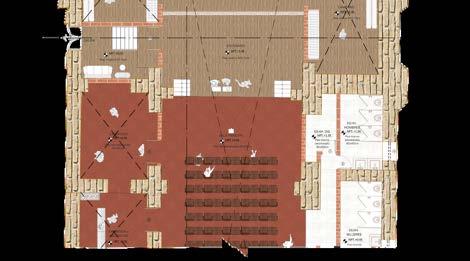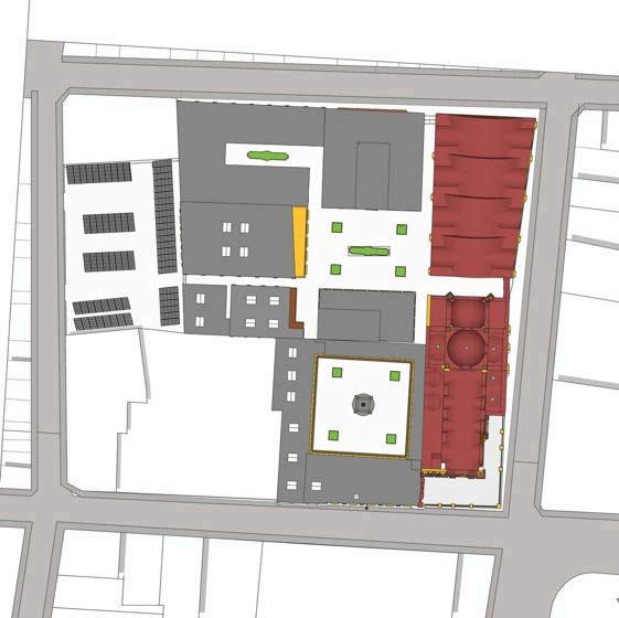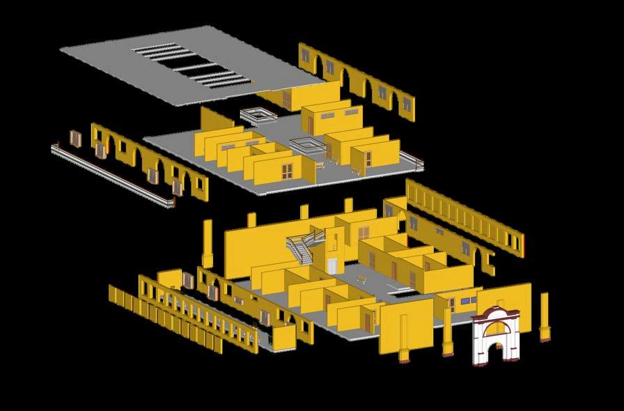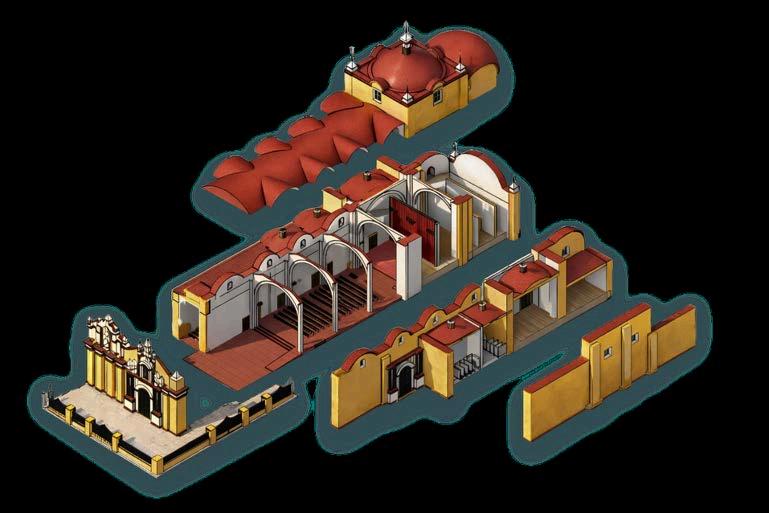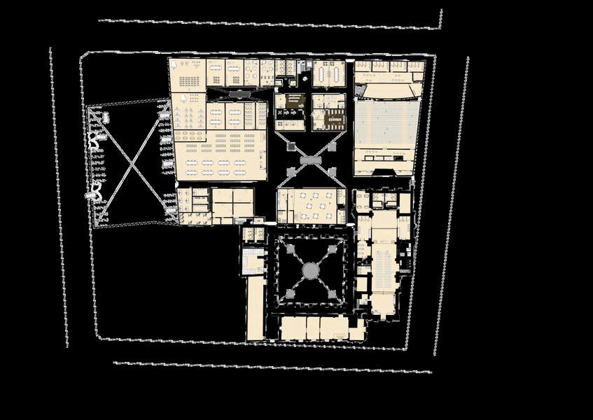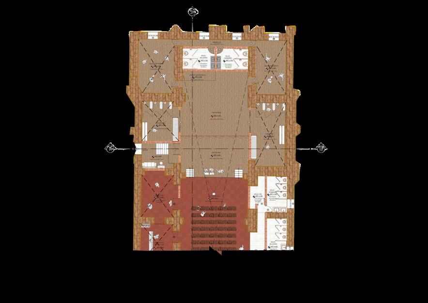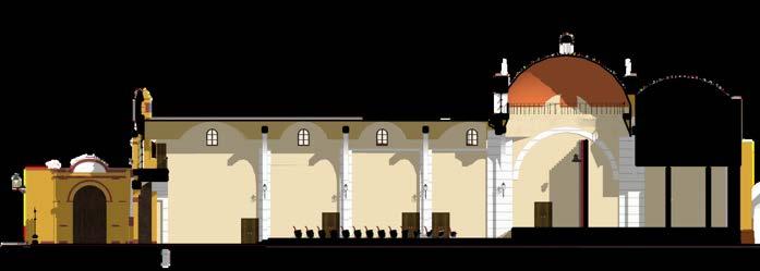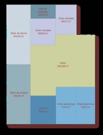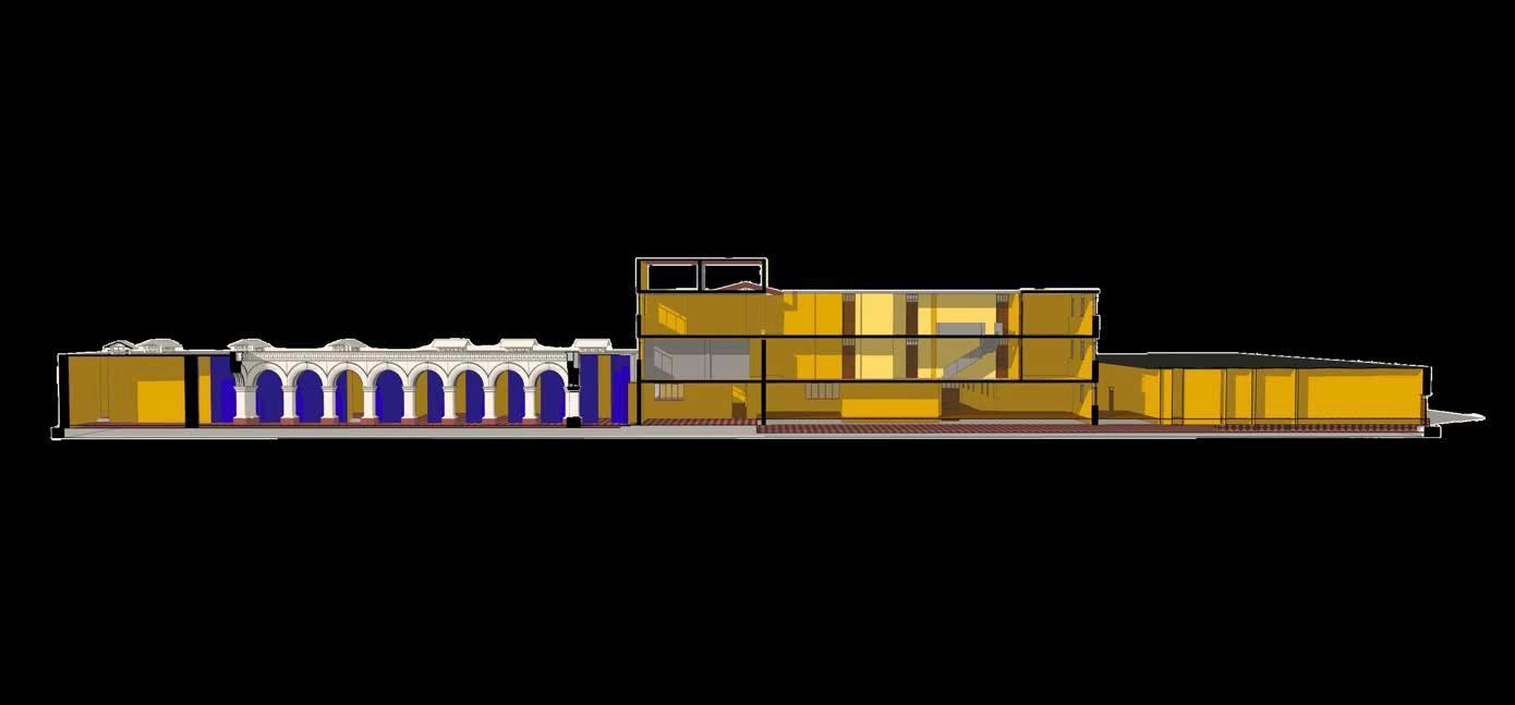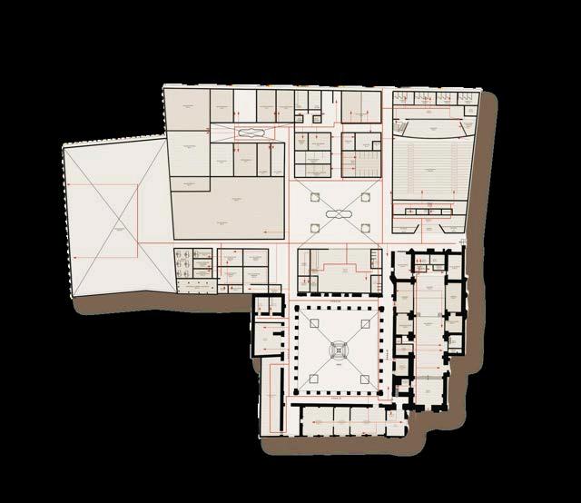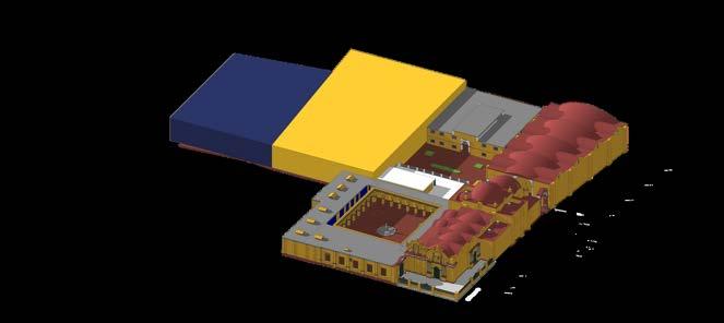 claustro ahora se disponen los espacios principales: el nuevo teatro con sus áreas técnicas,elmuseoconsalaspermanentese interactivas,labibliotecaylamediateca,así comotalleresartísticosyzonasdeapoyoque