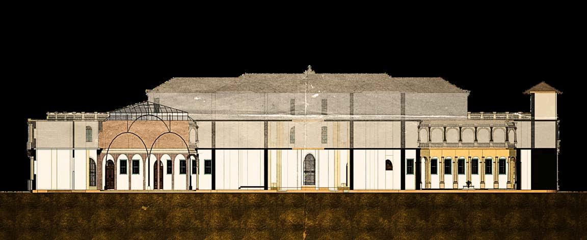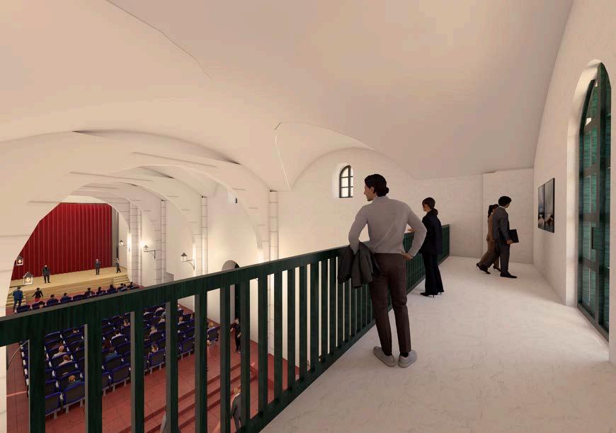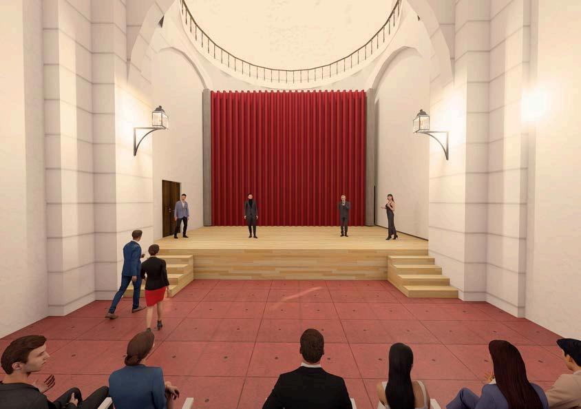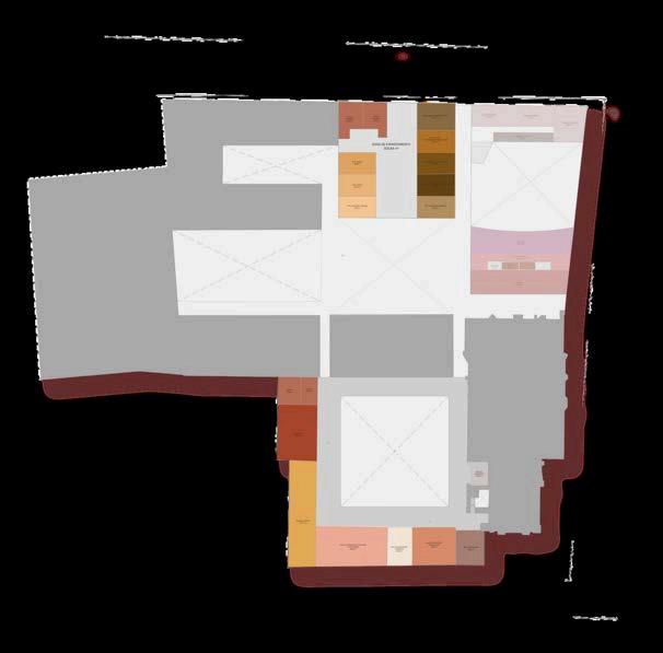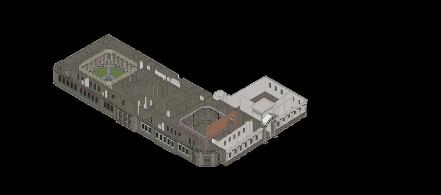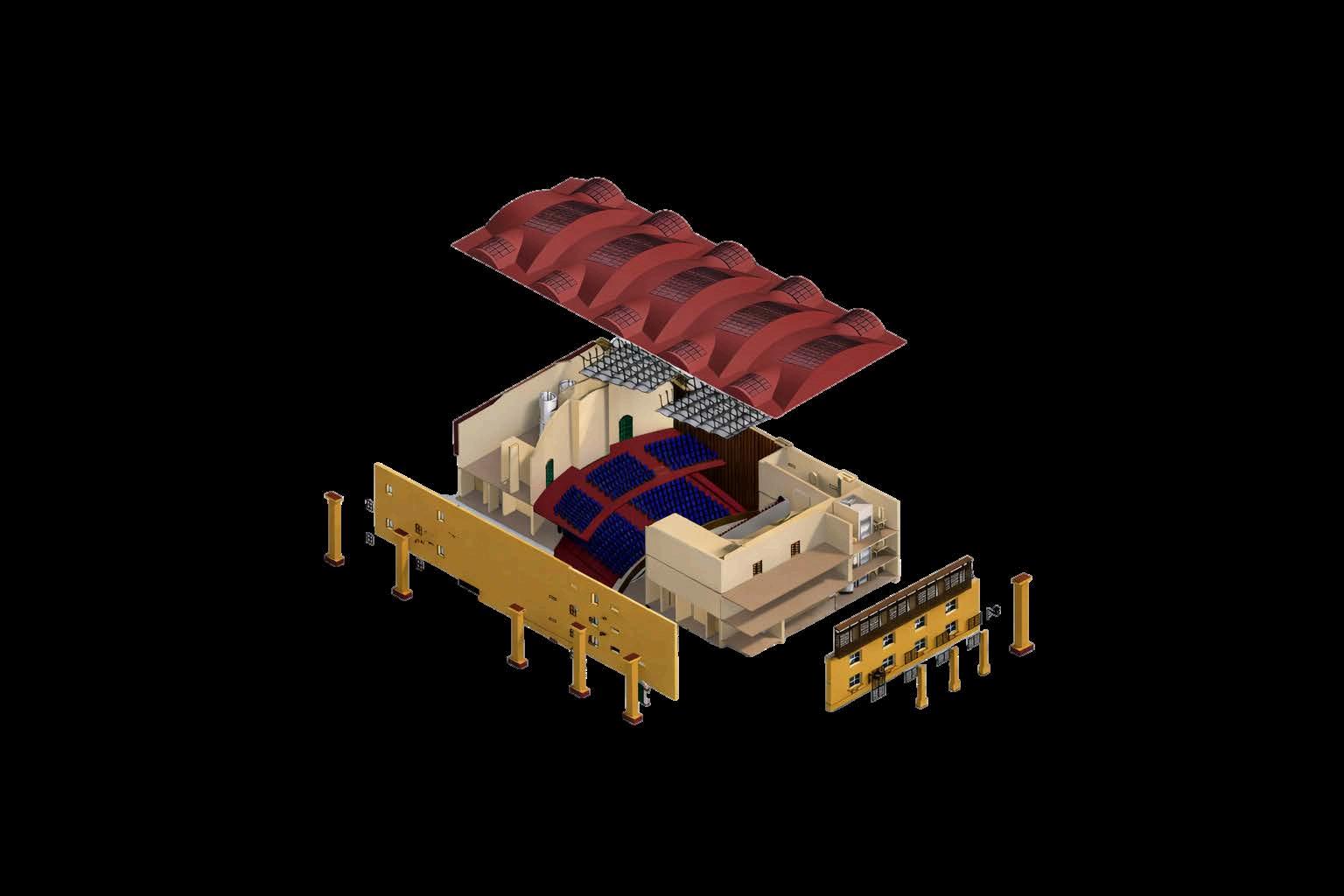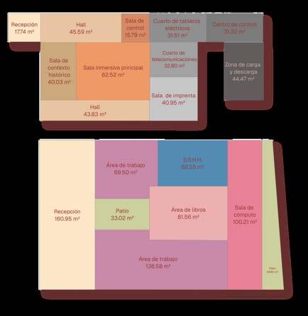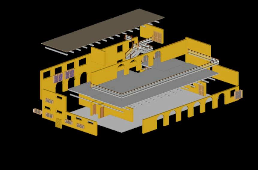 claustro ahora se disponen los espacios principales: el nuevo teatro con sus áreas técnicas,elmuseoconsalaspermanentese interactivas,labibliotecaylamediateca,así comotalleresartísticosyzonasdeapoyoque