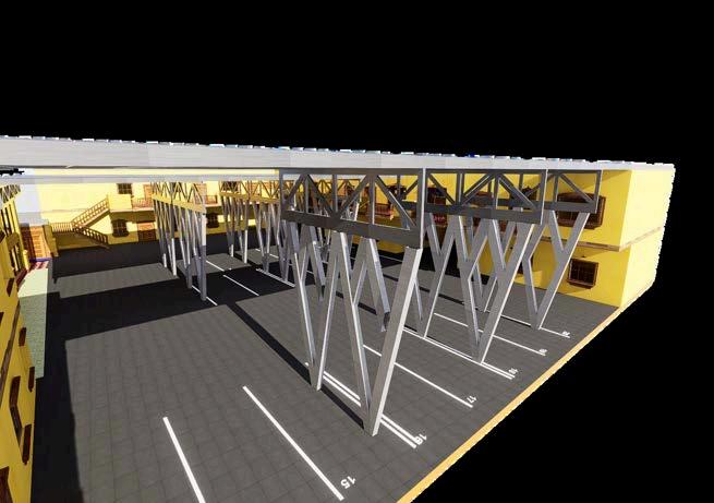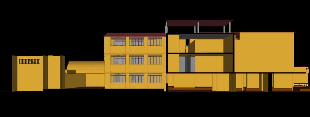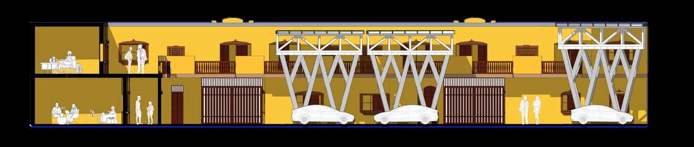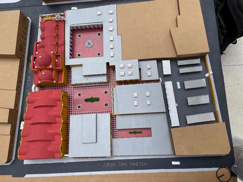 Hacia el frente del Jr. Bolognesi se proyecta una ampliación del estacionamientoconelfinderesponder adecuadamente al aforo total del nuevo centro cultural, garantizando la capacidad necesaria para albergar el número de vehículos que exige su funcionamientopleno.Estaextensiónno solo aumenta el área disponible para estacionamiento, sino que también permiteorganizaraccesosdiferenciados deentradaysalida,mejorandolafluidez del tránsito interno y reduciendo los puntos de conflicto vehicular. La intervención se integra al perfil urbano mediante una volumetría baja y una transición controlada con los edificios existentes, asegurando una conexión operativa sin afectar la lectura del conjunto. Con esta estrategia, el complejo adquiere una infraestructura más eficiente y preparada para el flujo constante de usuarios, visitantes y personal.