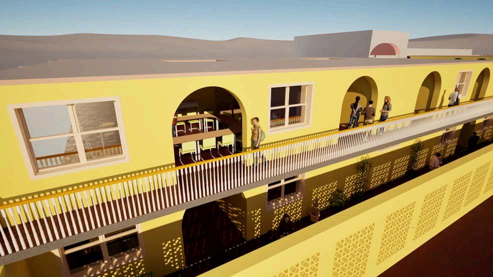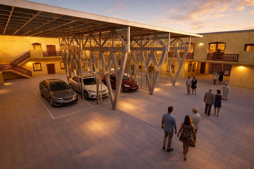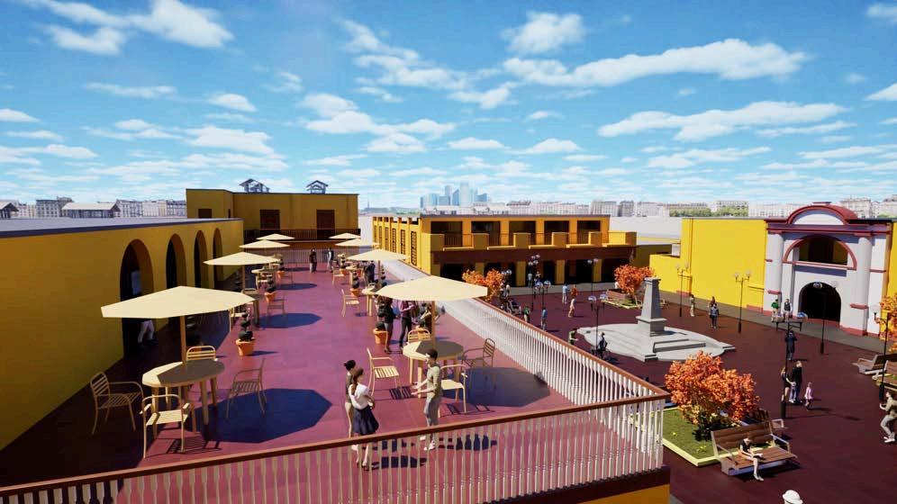 Al situarse en un entorno donde predomina la arquitectura tradicional ylosespaciosdememoriacolectiva, el proyecto adopta un rol que trasciende su función interna para convertirseenunelementocapazde dialogarconlahistoria.Supresencia fomentalarevalorizacióndelentorno inmediato y potencia la cohesión entre edificaciones patrimoniales, equipamientos culturales y espacios públicos,generandounaexperiencia urbana más integrada. Además, su emplazamientodentrodeunáreade altaactividadcívicaysocialimpulsa nuevos vínculos comunitarios, fortaleciendo la apropiación del espacio por parte de habitantes y visitantes.Enconjunto,elproyectono solo complementa el paisaje urbano existente, sino que también aporta una renovación respetuosa que ayuda a revitalizar la dinámica del centro histórico sin perder su esencia.