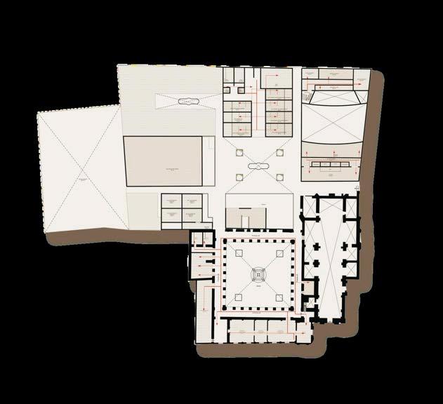 y recorrido. Se liberan espacios, se crean secuencias temáticas más fluidas y se articulan salas con diferentes escalas para permitir exhibicionespermanentes,temporales y participativas. La transformación respeta el carácter perimetral del claustro, pero introduce núcleos complementarios como depósitos, áreas de mediación cultural y puntos de descanso que mejoran la experiencia del visitante. Con ello, la antigua estructura adquiere un nuevo protagonismo dentro del centro cultural,convirtiéndoseenunespacio activo, accesible y coherente con la vocaciónpatrimonialdelconjunto.