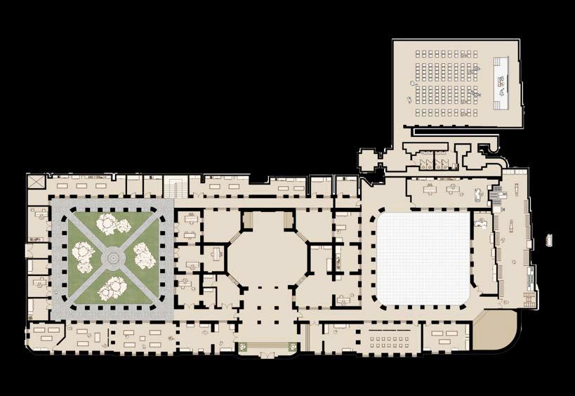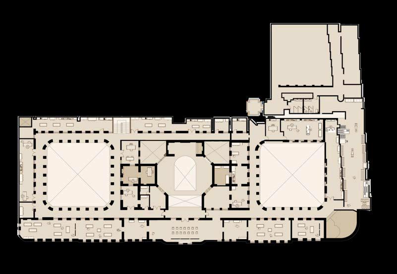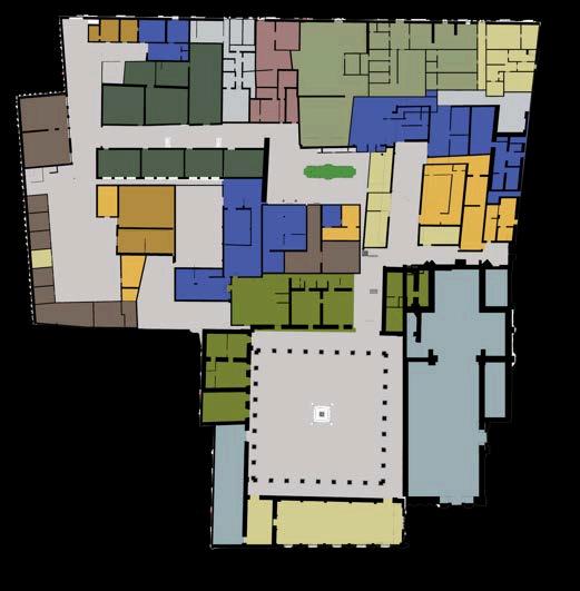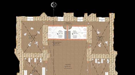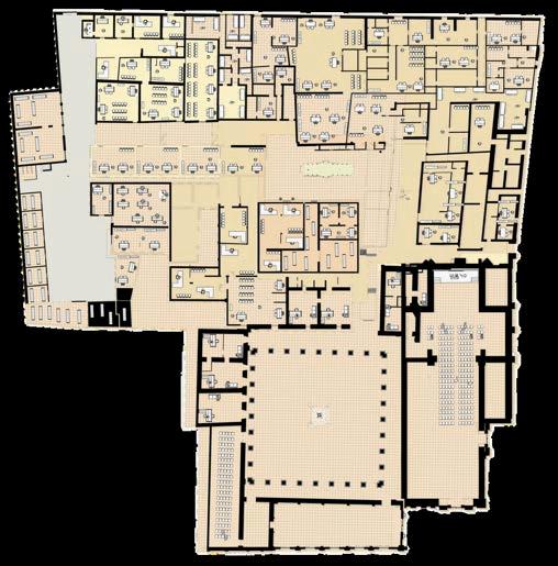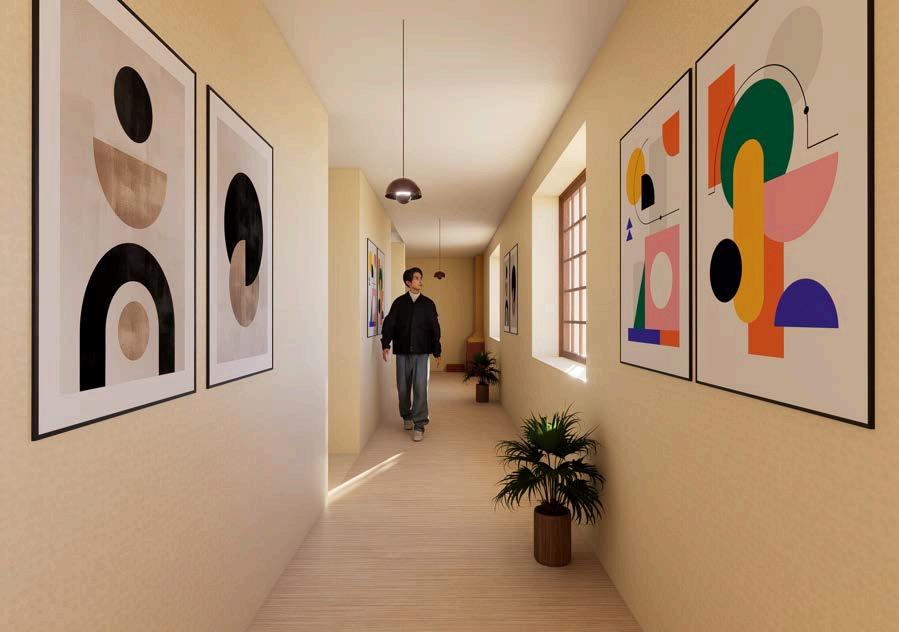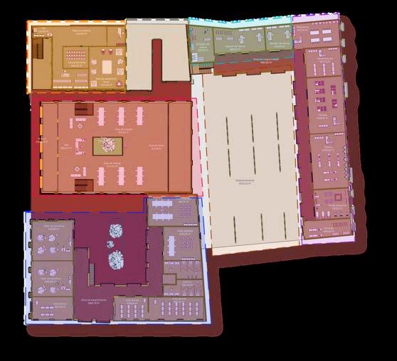 con el urbano. Estos pasillos se complementan con nodos de transición que conducen hacia alas secundarias, evitando la rigidez del trazado. La flexibilidadespacial,pensadadesdeeste nivel, permite que ambientes originalmente concebidos como oficinas oáreasdereuniónpuedanadaptarseen