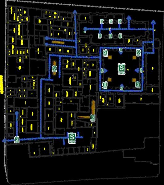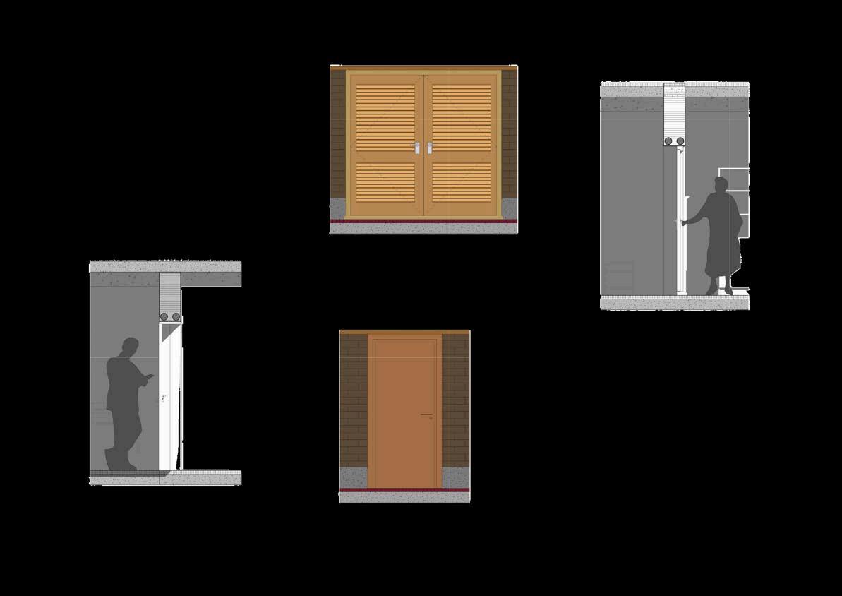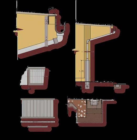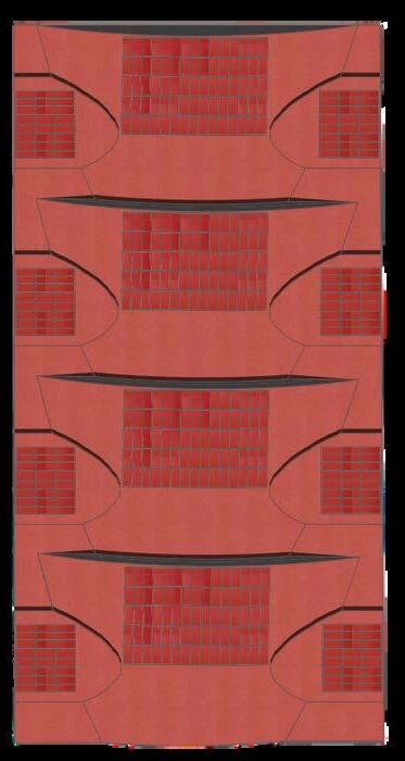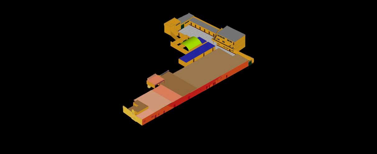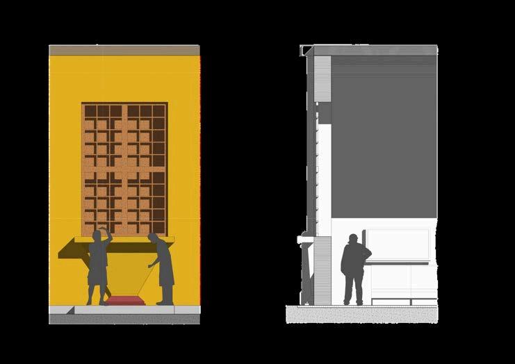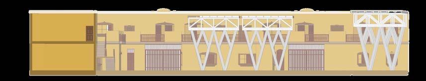 Aellossesumanescalerassecundarias ydeservicio,destinadasalpersonal,al mantenimientooalaevacuaciónencaso de emergencias, asegurando así un sistemademovilidadcompletoyseguro. En los cortes también se hacen evidentes los recursos de iluminación y ventilación natural, como patios, lucernarios o vacíos que permiten vincular los diferentes niveles. Estos elementos no solo aportan confort ambiental,sinoquetambiénrefuerzanla orientación espacial del usuario, al ofrecer referencias verticales claras. La posibilidad de reconfigurar estos espacios, sumada a la flexibilidad estructural, otorga al edificio un alto potencial de reciclaje adaptativo, permitiendoqueconeltiempolosniveles puedan transformarse en función de nuevas necesidades sin perder continuidad ni coherencia en su circulación.