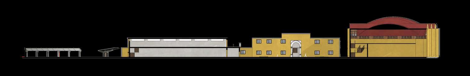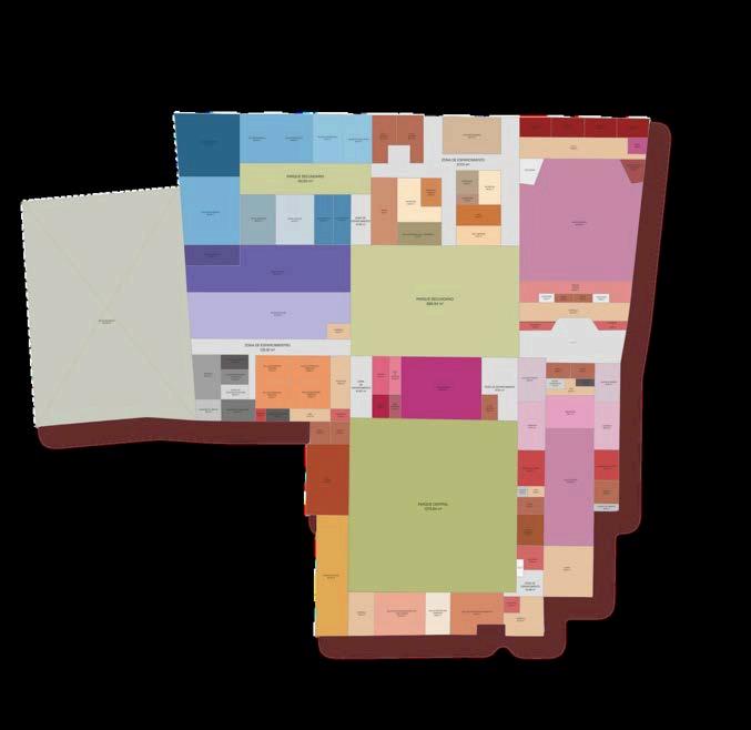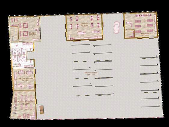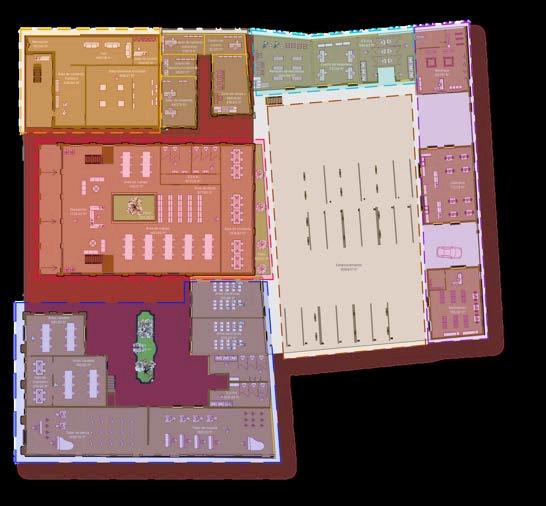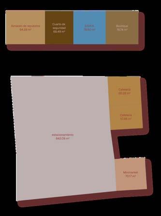 Hacia los bordes del predio se ubican el estacionamientoampliado,lacafeteríaylos almacenes, permitiendo que las funciones operativas no interfieran con los recorridos públicos.Elesquemabuscaquecadaárea dialogueconlasdemásatravésdepatios, pasajesyejespeatonales,consolidandoun primerpisocohesionado,flexibleypreparado