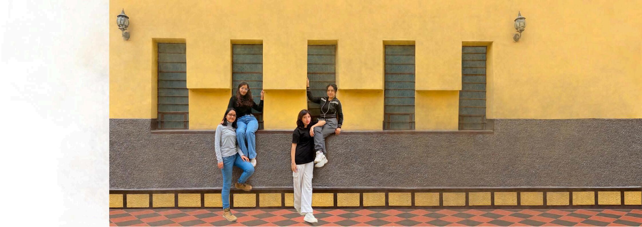 EL RÍTMO se expresa en la repetición ordenada de ventanas rectangulares que, organizadas en ejes verticales y horizontales, refuerzan la simetría y equilibrio de la fachada. Este patrón rítmico responde tanto a criterios estéticoscomofuncionales,yaquesigue la estructura interna del claustro y la lógicaconstructivacolonial.