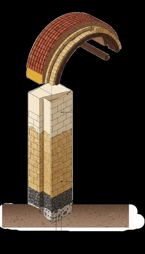 Entrandoatallarlos refuerzos de acero y hormigón armado (vigas metálicas bajoforjados,losasderefuerzo,cadenas de confinamiento, zapatas o pedestales nuevos), a fin de preservar el sistema originaldemurosportantes.