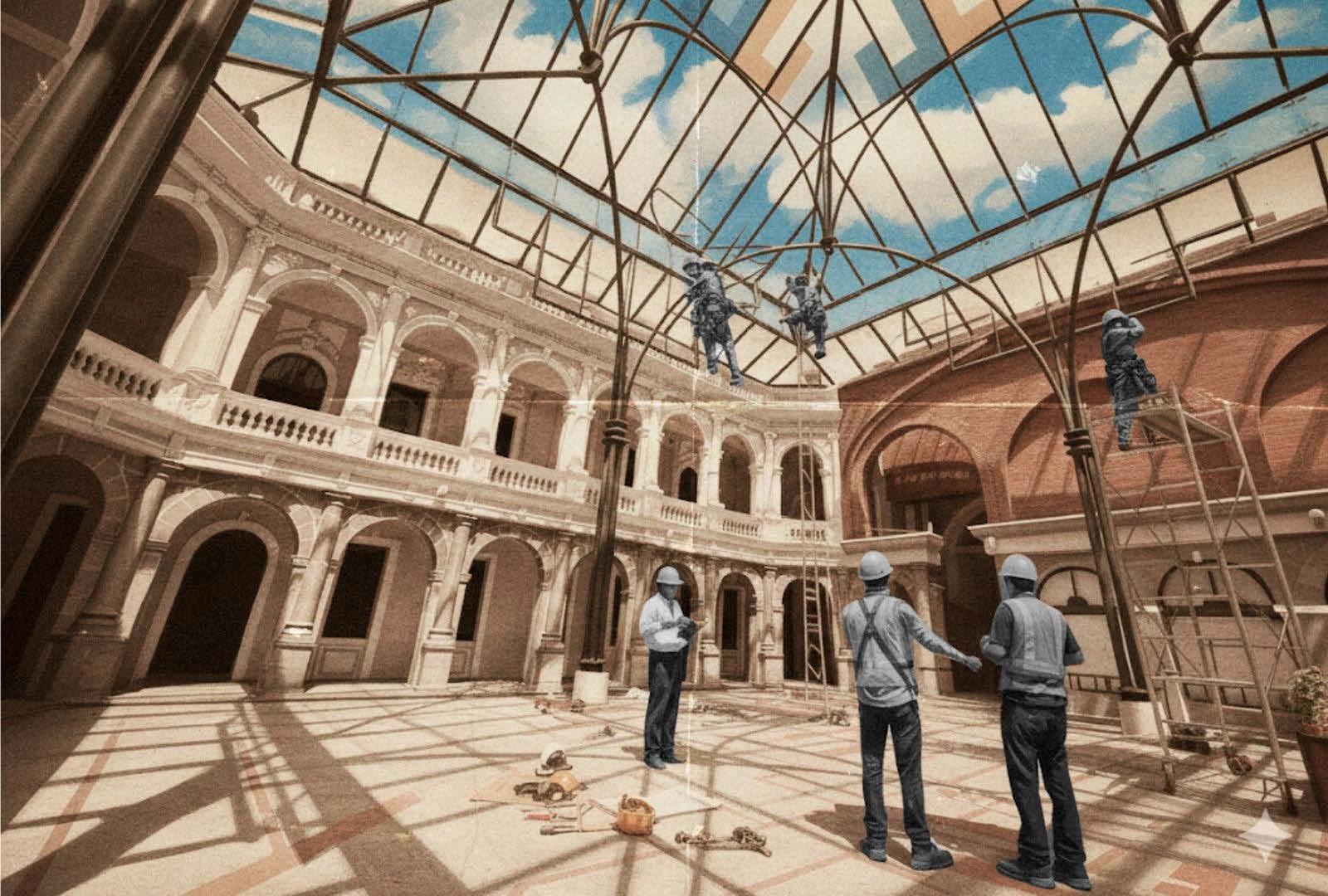 Muchos de los techos y bóvedas originales han sido restaurados y reforzadosparamantenersuestabilidad estructural sin alterar su carácter patrimonial. Estas zonas representan el núcleohistóricodeledificioyconservan la memoria arquitectónica de cuando el inmueble funcionaba como colegio jesuita y posteriormente como universidad.