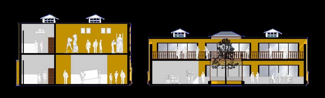 Estediálogoentrelonuevoyloantiguo permitequelafachadaurbanamantenga su carácter tradicional mientras integra funciones contemporáneas. A ello se suman terrazas en el segundo nivel del museo, la biblioteca y la cafetería, pensadascomoespaciosdeencuentroy extensión de las actividades culturales con vistas hacia el patio central. Finalmente, los lucernarios que se distribuyen en techos de museo, bibliotecayalmacenespermitenunjuego controlado de luz natural, dinamizan la siluetasuperiordelconjuntoyestablecen una continuidad con elementos preexistentes, fortaleciendo una lectura arquitectónicaintegradaycontextual.