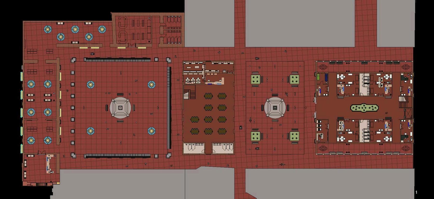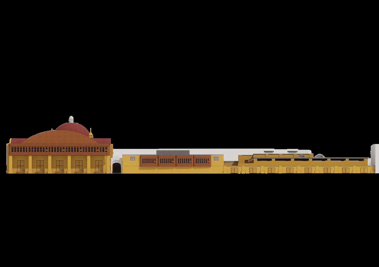 La escala monumental se encuentra en torno a los patios centrales, caracterizada por techos muy altos, grandes arquerías y amplios espacios abiertoscubiertos.Estetipodeambiente genera un impacto visual fuerte y está destinadoaalbergareventoscolectivos, exposiciones de gran formato y actividadespúblicasdemayorafluencia. Suamplitudpermiteunacirculaciónlibre yuncontactovisualdirecto.