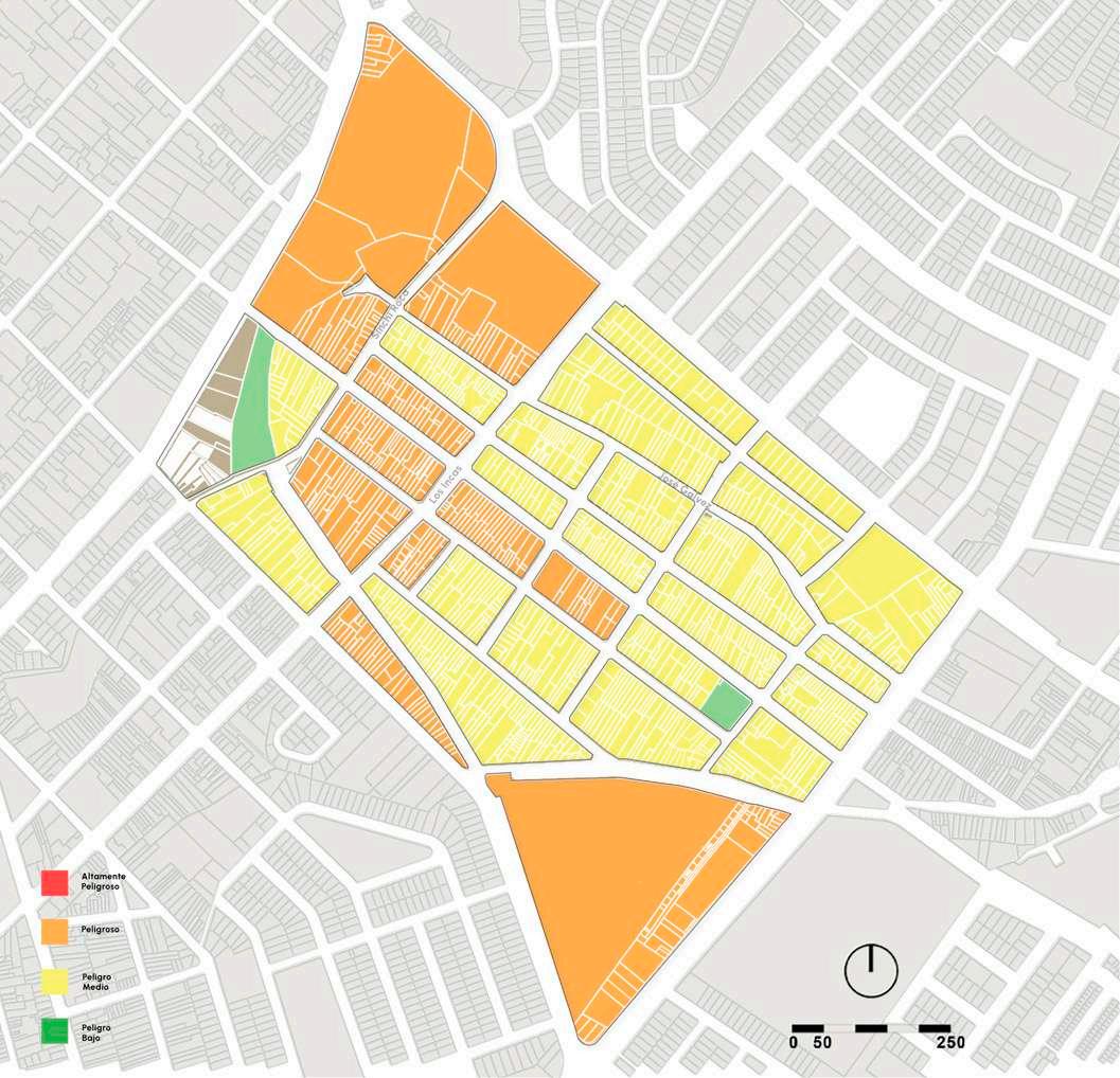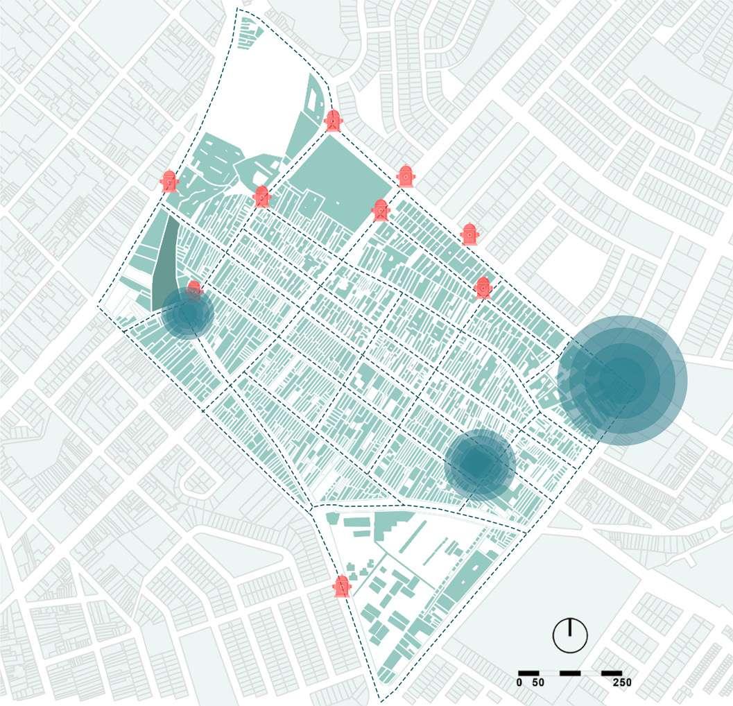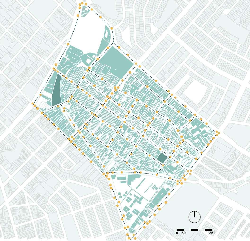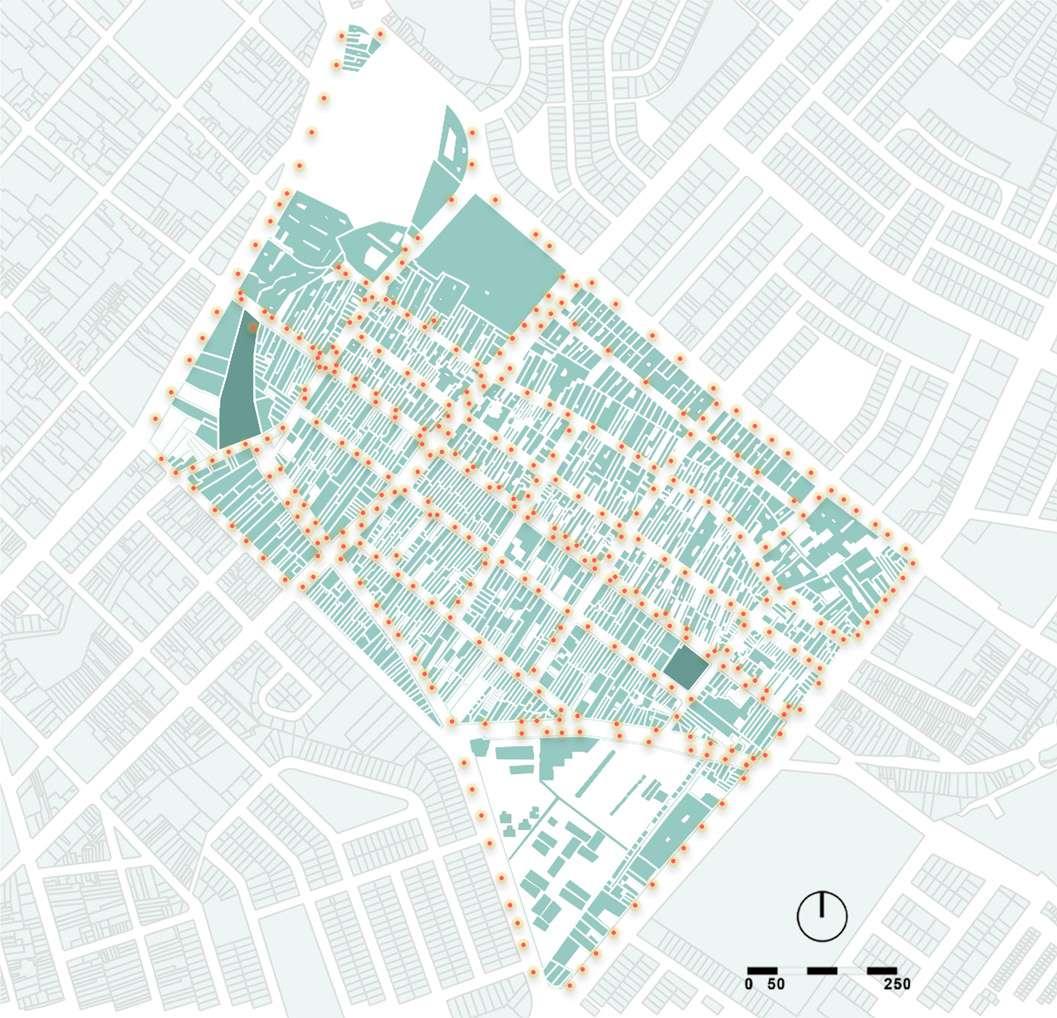 Tras un estudio detallado de dichas manzanas se procedió a calificarlas de dos maneras: manzanas largas y cortas. Obteniendo finalmente que el 60% de las 33 manzanas que comforman el sector, presentan tramos muy largos que caminar; trayendo como consecuencias la inseguridad y puntos fantasmas que las personas evitarán cruzar.