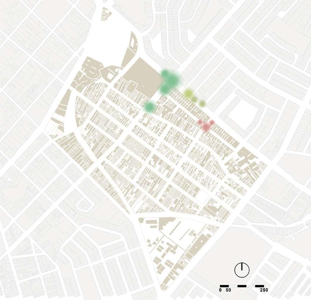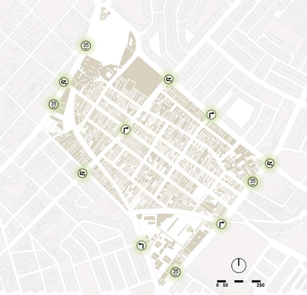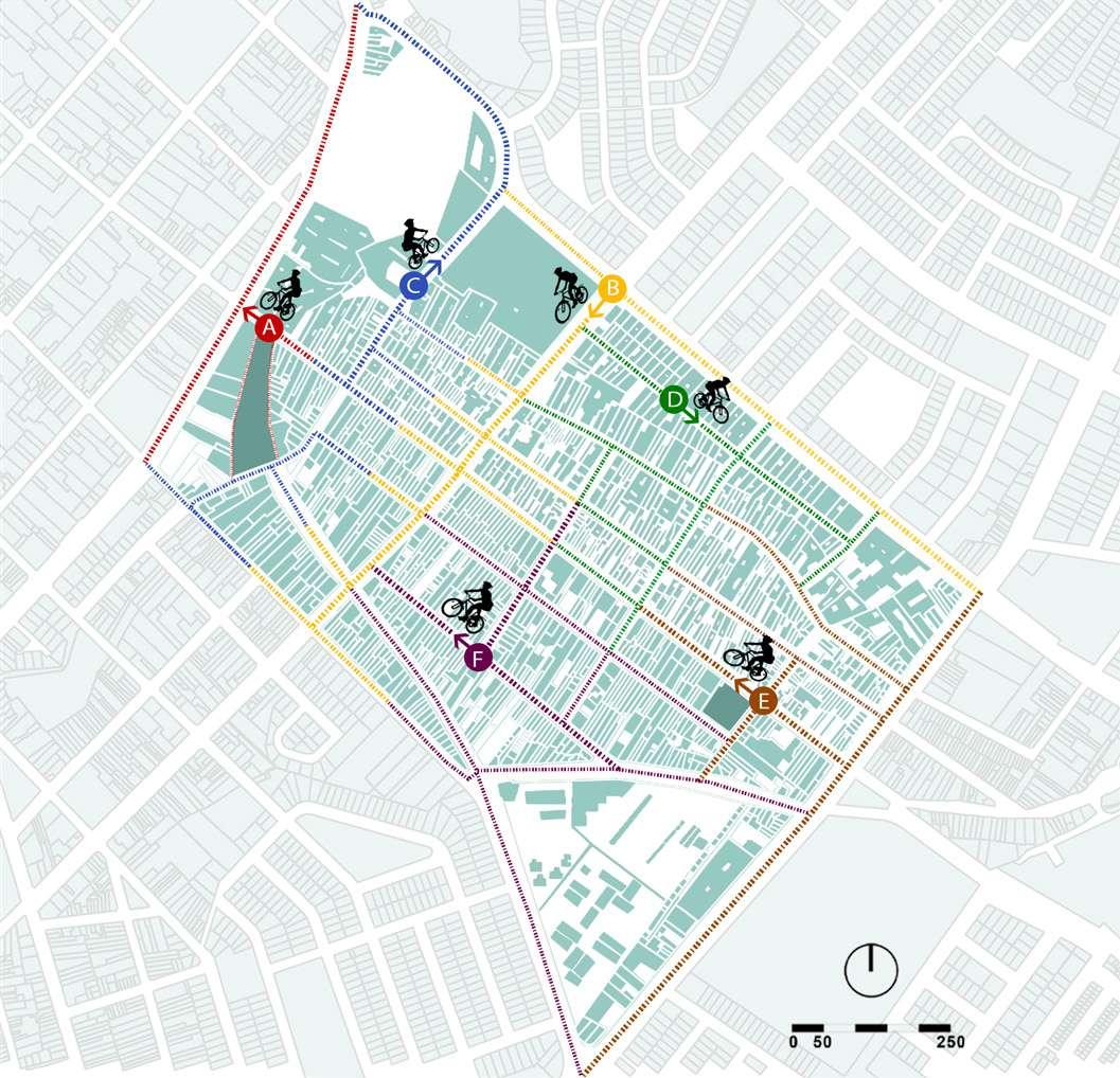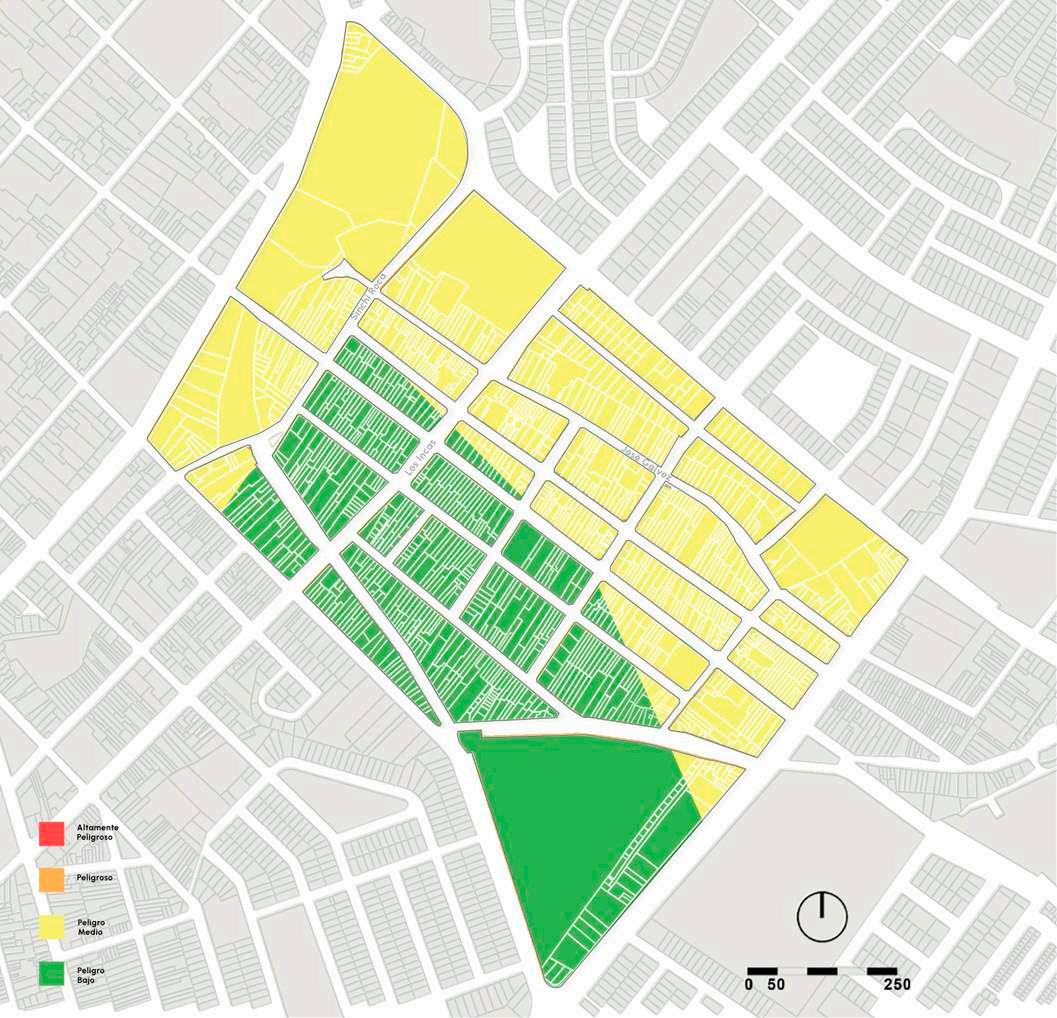 Tras un estudio detallado de dichas manzanas se procedió a calificarlas de dos maneras: manzanas largas y cortas. Obteniendo finalmente que el 60% de las 33 manzanas que comforman el sector, presentan tramos muy largos que caminar; trayendo como consecuencias la inseguridad y puntos fantasmas que las personas evitarán cruzar.
