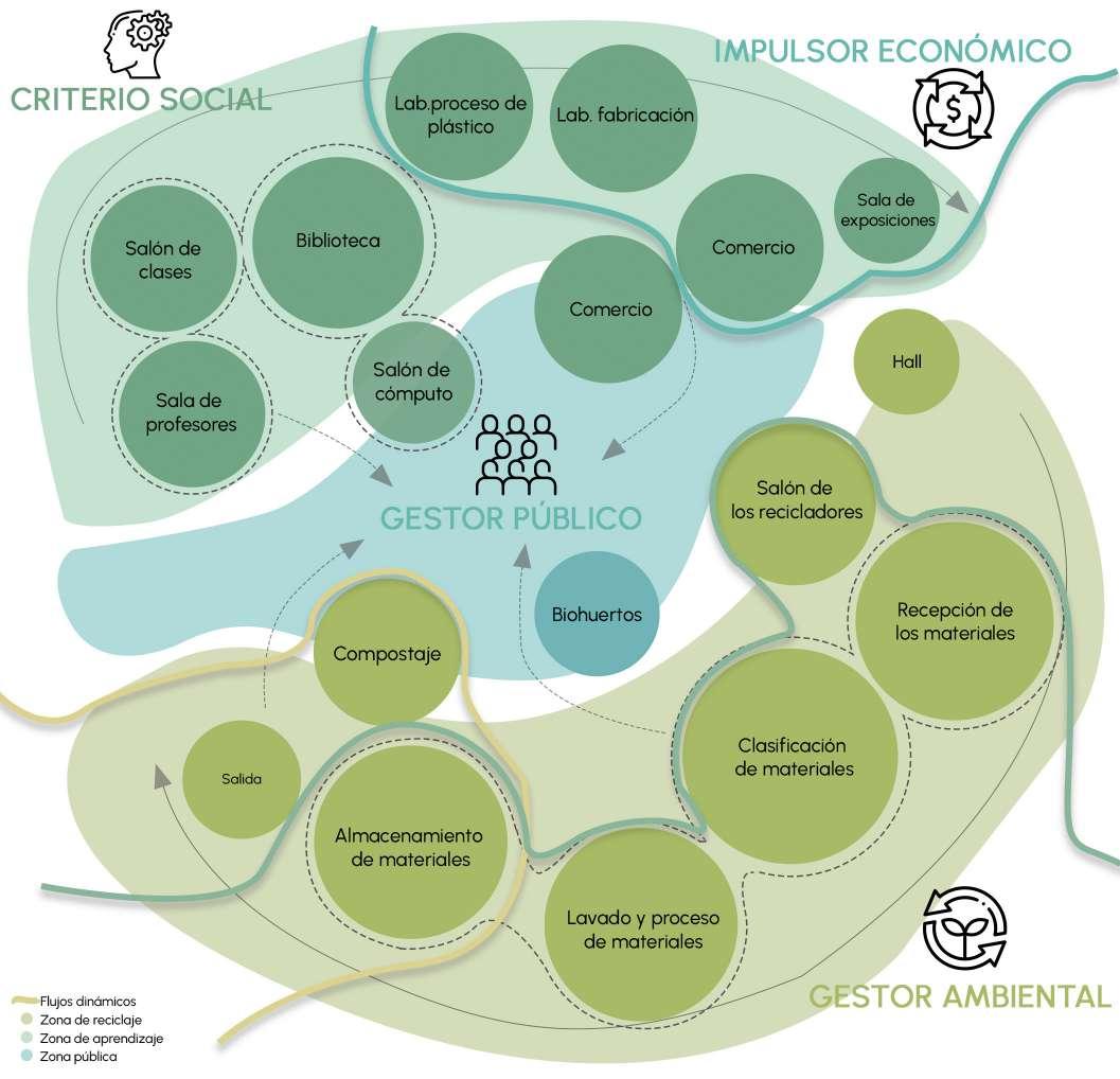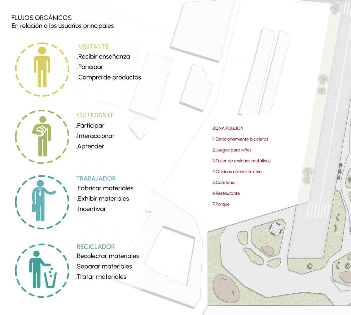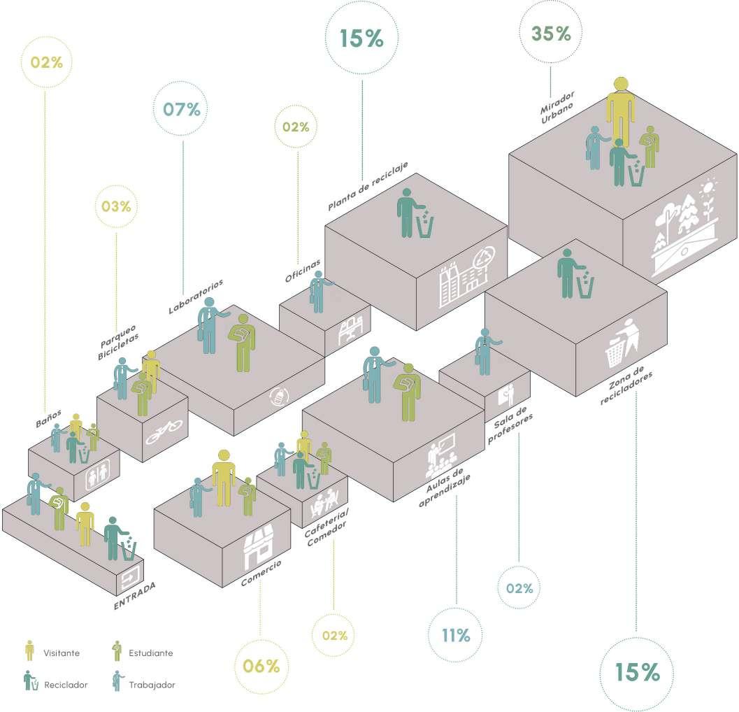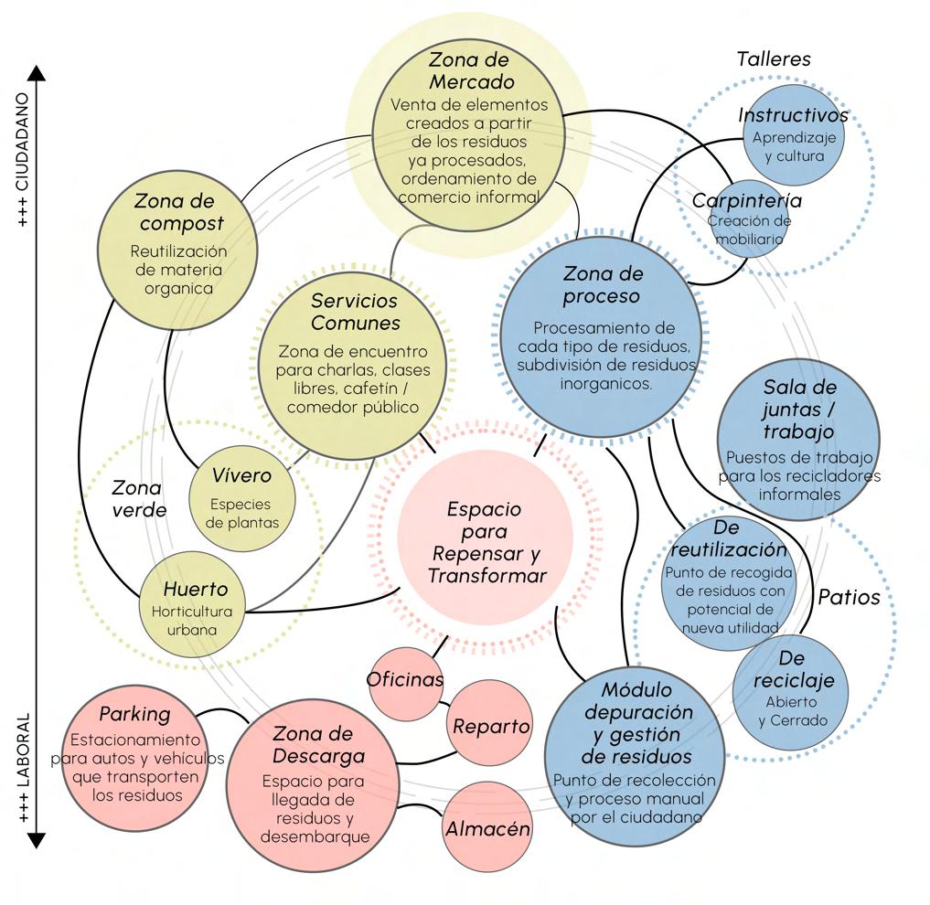 Es así como este fragmento de ciudad puede complementar el desarrollo de un sistema de gestión de residuos que sea más eficiente y que a la vez, permita que los recicladores continúen formando parte de esta cadena de reciclaje.