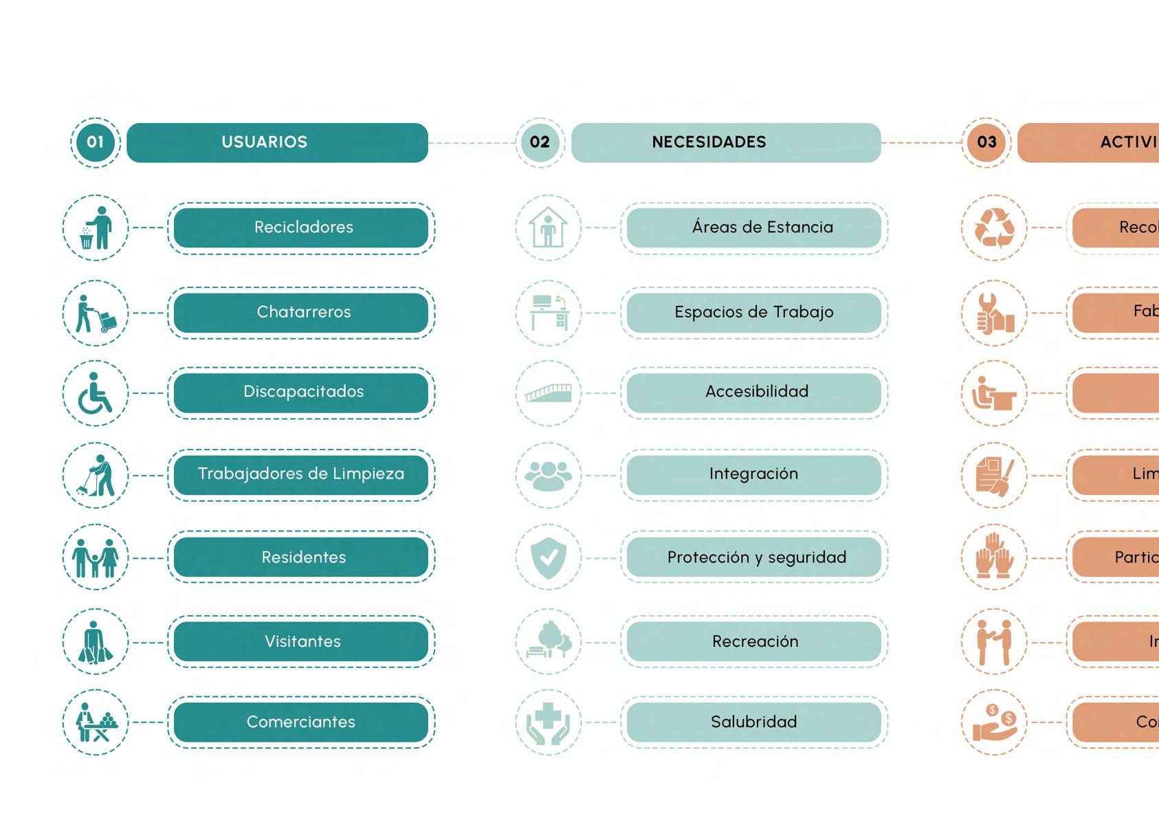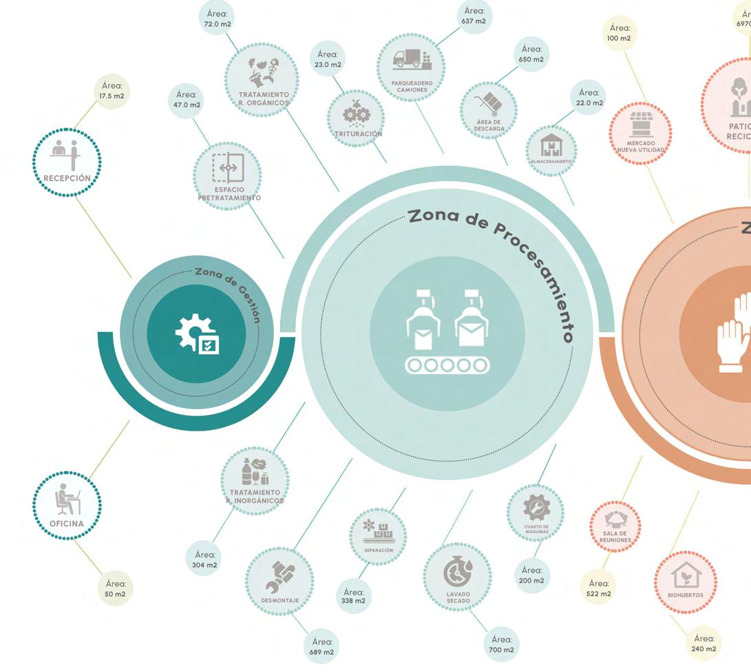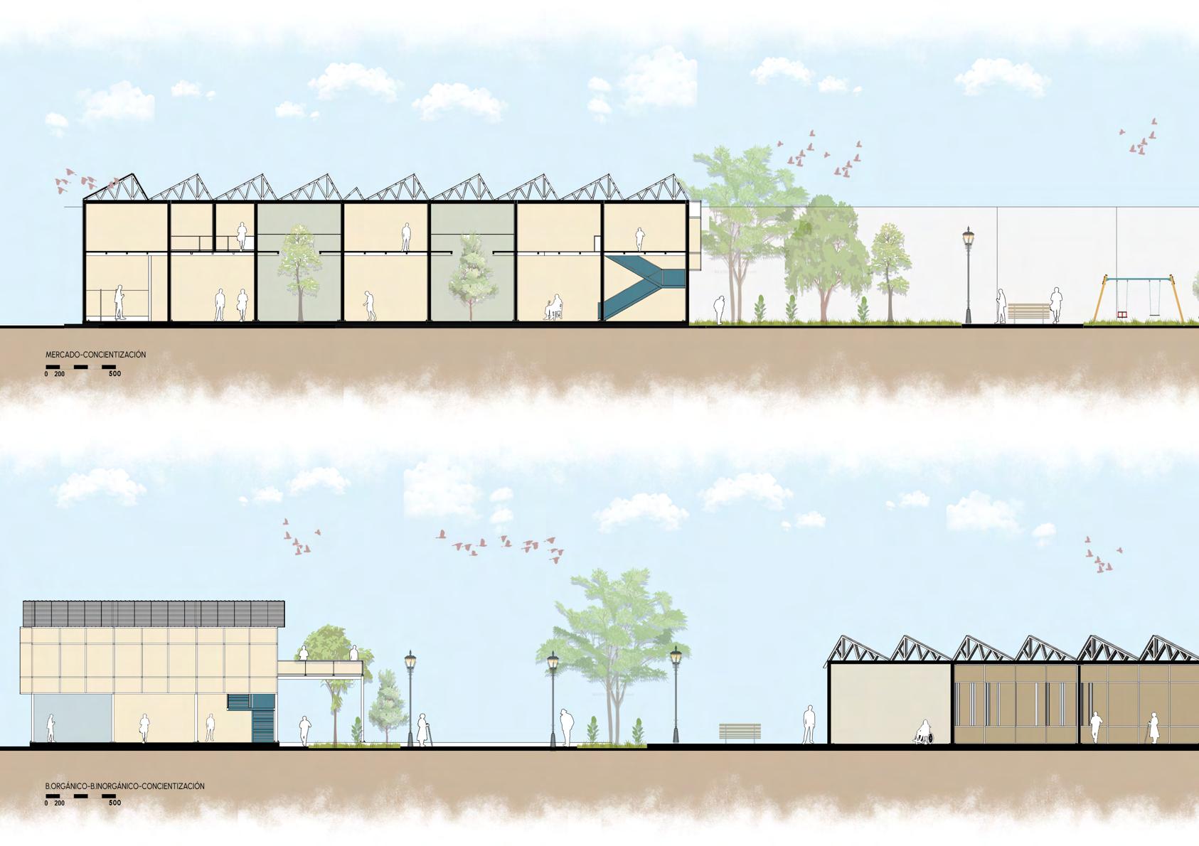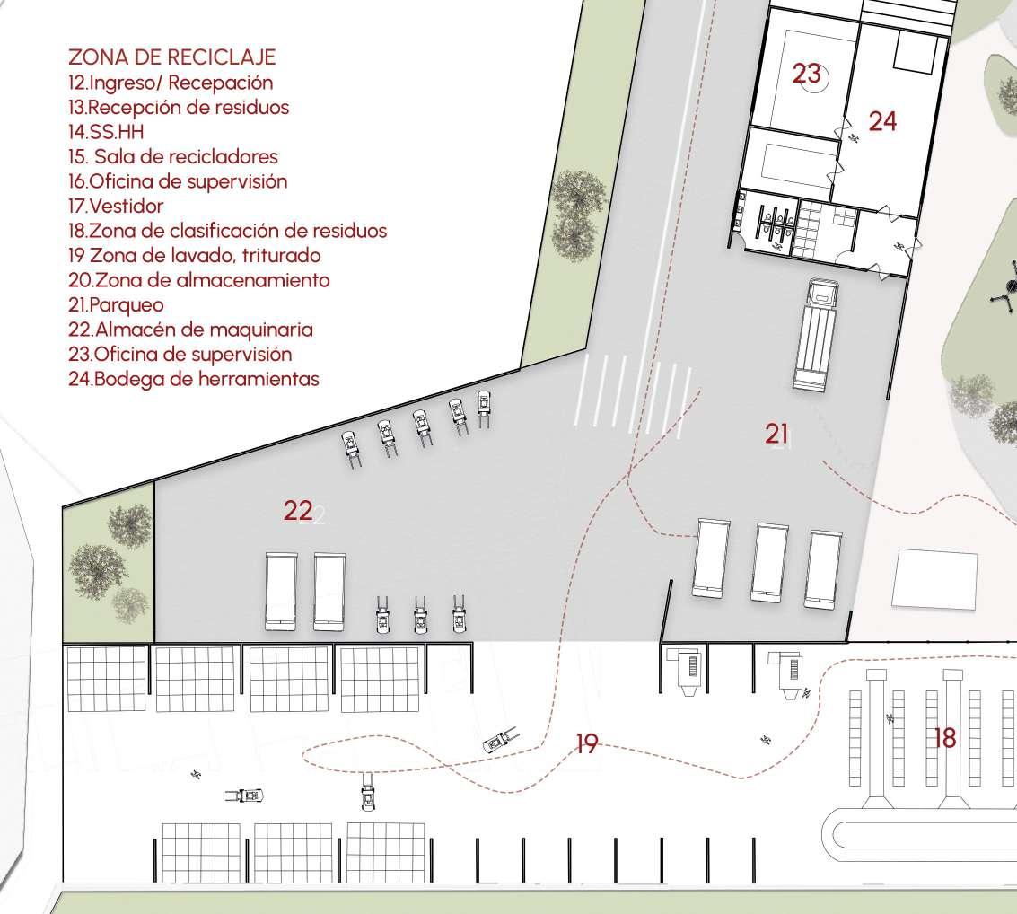 Es así como este fragmento de ciudad puede complementar el desarrollo de un sistema de gestión de residuos que sea más eficiente y que a la vez, permita que los recicladores continúen formando parte de esta cadena de reciclaje.