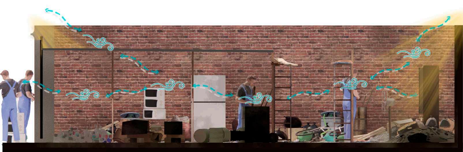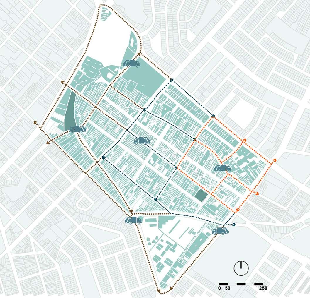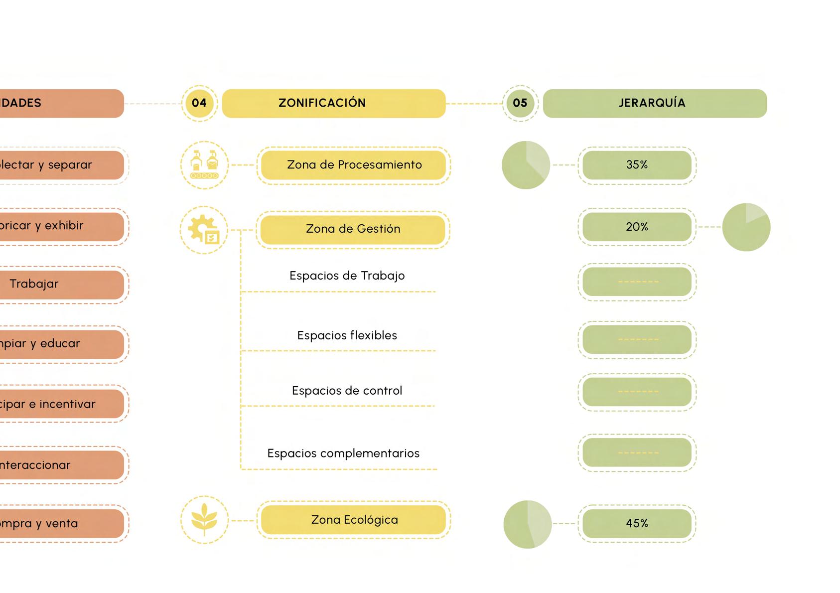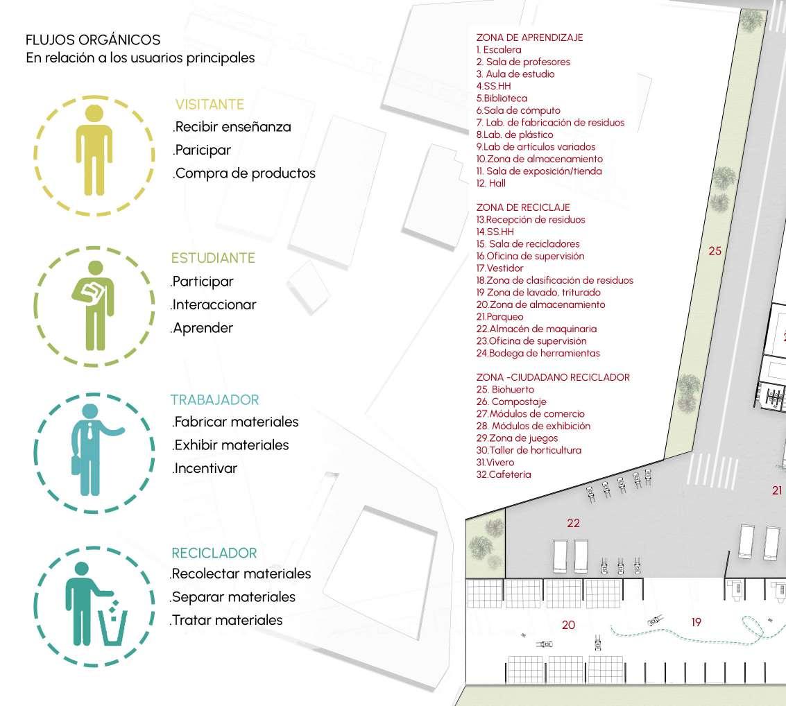 Es así como este fragmento de ciudad puede complementar el desarrollo de un sistema de gestión de residuos que sea más eficiente y que a la vez, permita que los recicladores continúen formando parte de esta cadena de reciclaje.