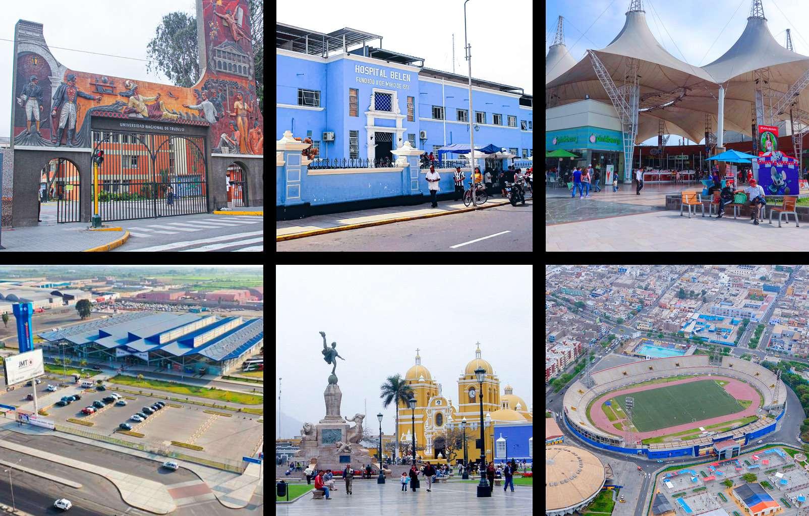 El centro urbano capital del reino Chimú constituye la ciudad de barro más grande de América prehispánica y fue declarado Patrimonio Mundial por la Unesco, así como, la plaza de armas como epicentro histórico y monumental de la ciudad, Alto Salaverry, Caballo Muerto, Cerro Oreja, Complejo Huacas del Sol y de la Luna, Galindo, obras hidráulicas, entre otros; su Centro Histórico y pueblos tradicionales de raigambre indígena como Moche y Huanchaco el cual es el balneario más importante de la ciudad.