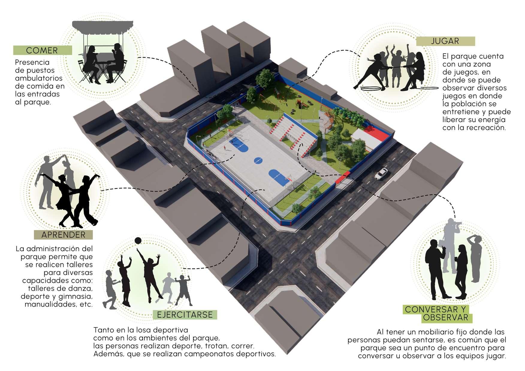 logrando contrarrestar los niveles de delincuencia y contaminación que se puedan generar. Así, con la idea de una intervención, podría generarse espacios que satisfagan las demandas arquitectónicas que merece el consumidor y que se han generado en el contexto actual.